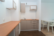 In the kitchen, built-in furniture, electric stove, electric oven. The kitchen arrangement allows it to be integrated with the living room.