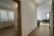 – bright, sunny living room with kitchenette and entrance to a large balcony – south side