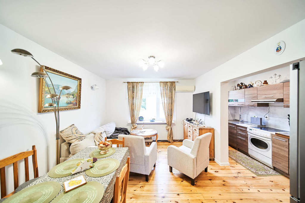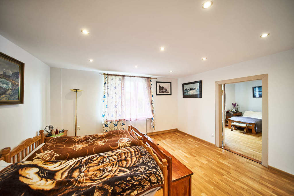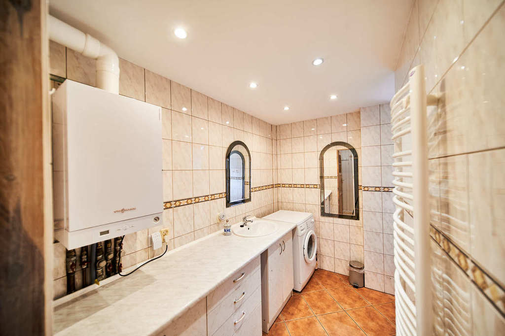 The building has several heating systems. The main source of heat is a gas boiler, additionally we have a biomass boiler, installations and pipes are insulated. The building has 2 air-to-air heat pumps (one for the living room, the other for the attic), which can be used for cooling and heating.