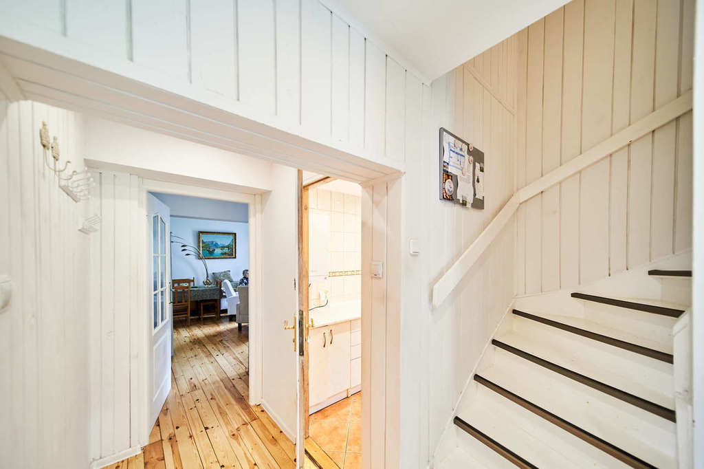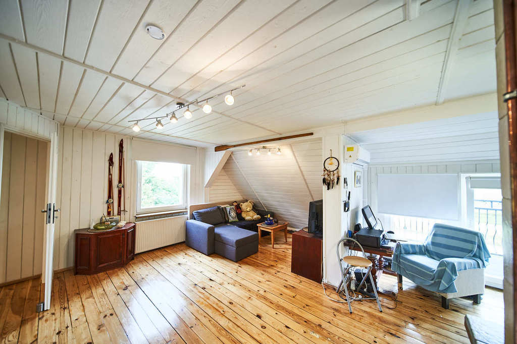 It is a single-storey house with a usable attic and partial basement. A detached garage built on its own foundation. The building’s communication route is an internal staircase, running from the basement to the attic.