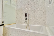 Bathroom (approx. 6 m2) with a washbasin, toilet and bathtub with shower.