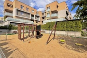 A guarded and monitored estate with abundant vegetation, a playground and parking spaces.