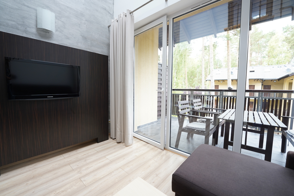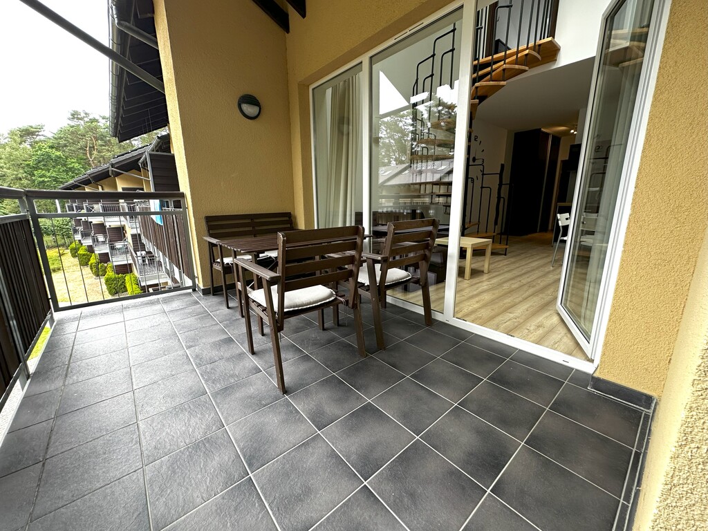 A two-story apartment (2nd floor) by the sea, nestled in the forest, with a spacious 9 sq m balcony and a heated outdoor pool. The Seaside Narrow Gauge Railway is nearby. Ideal for permanent residence, a vacation rental, or a rental investment. Ready to move in. The apartment has an area of 47 m2 (usable area 40,69 m2) and consists of: – a living room with a kitchenette – a bathroom – a mezzanine. The fees include: – community fee (approx. PLN 580 per month) – electricity according to consumption (approx. PLN 250 every 2 months). Advantages of the property: – two-level layout (functional mezzanine and impressive spiral staircase) – bright, open interior (large glazing provides excellent lighting and contact with the surrounding nature) – parking space in the underground garage (obligatory purchase of PLN 45,000) – spacious outdoor swimming pool (open in the summer with heated water) – location (forest right outside the window, distance to the sea is 800 meters, nearby the Seaside Narrow Gauge Railway) – guarded, gated community – possibility of using children’s entertainment in the summer and the spa zone (for a fee) (additional charge) – catering area (restaurants and cafes offer the option of purchasing meals during your stay). Call and make an appointment. EXCLUSIVE