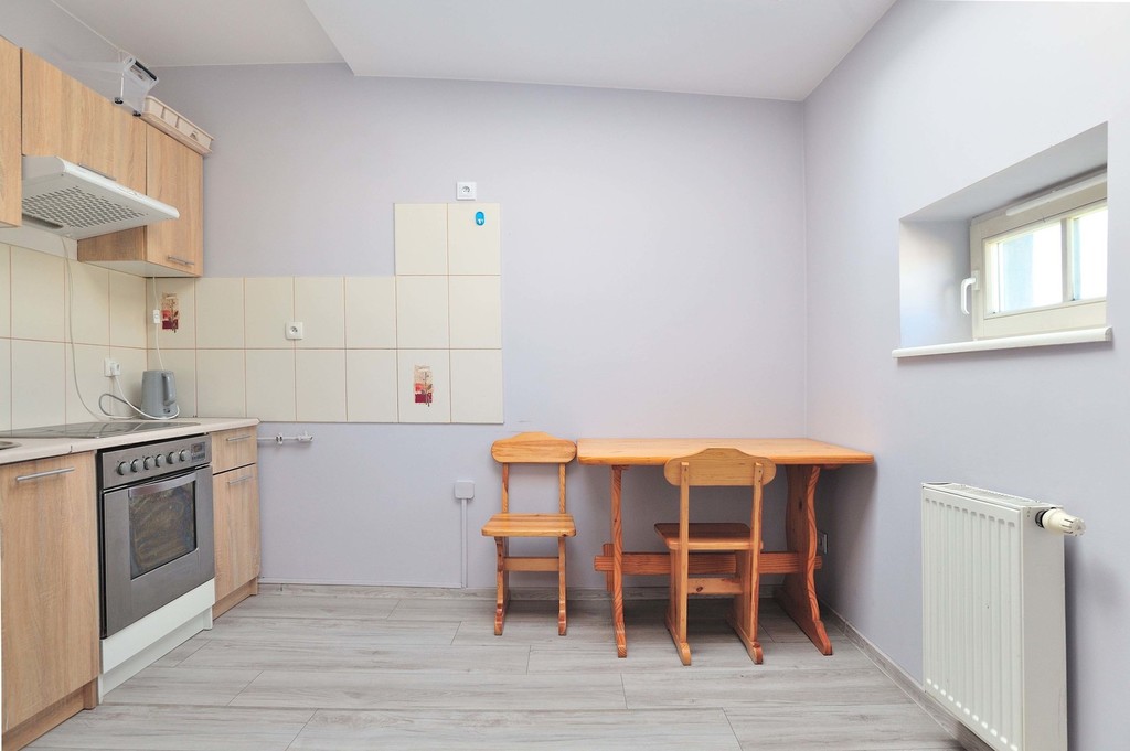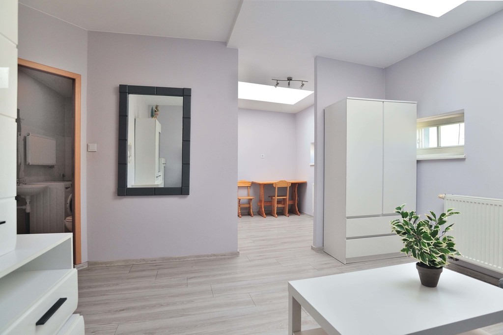 For rent, a studio apartment located in the attic on Jagiellońska Street in the city center. Excellent location – close to bus and tram stops. Large bathroom with bathtub and toilet. The apartment is furnished and equipped as shown in the photos. The apartment has been freshly renovated. Rent is PLN 1,600 + PLN 300 community fee + gas and electricity bills. Heating and hot water are provided by a gas boiler. Clean stairwell. Security deposit PLN 2,000. Please contact me Monday through Friday, 8:00 AM to 5:00 PM.