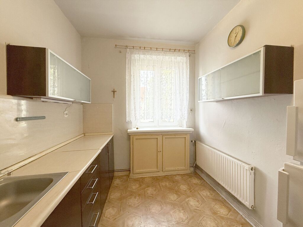 We offer for sale a two-room apartment located on the ground floor of a pre-war building. The building is insulated and painted, and the roof has been renovated. The apartment comprises two rooms, a hallway, a separate kitchen with a window, and a bathroom accessible from the smaller room. PVC windows, laminate flooring, and linoleum flooring are provided. Heating is provided by a dual-circuit gas furnace. The apartment requires renovation. The owner has access to a fenced garden on a neighborly basis. The apartment includes two basements, one 8.14 m² and the other 13.92 m², with a separate entrance from the building. Viewings are welcome. Price is negotiable. The above description is for informational purposes only and does not constitute an offer within the meaning of the Civil Code or other applicable laws. The information contained in the offers is provided by the property owners and is subject to change.