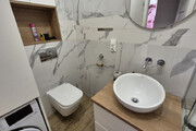 Beautiful 3-room apartment with a large balcony. The apartment is located on the first floor of a building with an elevator. The building was built in 2020 and features beautiful landscaping and glass elevators. The apartment measures 61.38 m². The living room, kitchen, and hallway form one space. The living room opens onto a beautiful, large balcony. The other rooms are approximately 15 and 12 m² each. The bathroom includes a toilet. The apartment is very well-maintained; all furnishings can be included in the price. District heating is provided by the District Electricity Company (SEC). The rent is approximately PLN 700. It is also possible to purchase a parking space and a storage unit for PLN 70,000. The neighbors are quiet. Restaurants, shops, and services are nearby. Public transportation is excellent: bus and train. This is an excellent way to get out of the city. This is an exclusive offer.