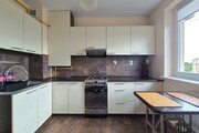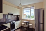 * bright, light kitchen (kitchen furniture, refrigerator, oven, gas stove, hood, sink) with a dining area; the kitchen does not include any equipment such as plates, pots, etc., but it is possible to equip it as needed