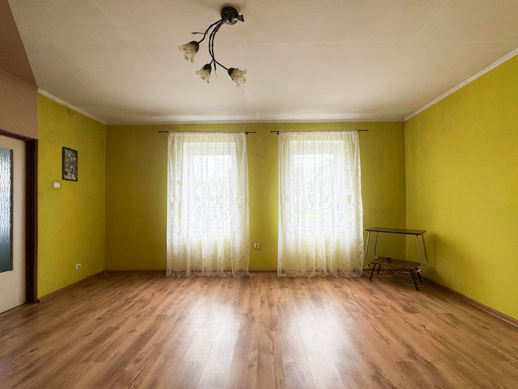 We recommend a single-family semi-detached house for sale in Wierzchosław, near Goleniów, West Pomeranian Voivodeship. This single-story, two-story house has a usable area of 118.8 m² and a built-up area of 99 m², situated on a beautifully landscaped plot of 939 m². There is the potential for additional space of approximately 40 m² in the attic. The house was built using traditional red brick construction. The roof is covered with ceramic tiles. The house is situated among houses, adjacent to a forest, approximately 5 km from the center of Goleniów. Access to the property is via a paved road. Rooms include: – living room, – kitchen, – bathroom, – bedroom, – living room, – vestibule. Utilities: – water system, – septic tank, – tiled stove, – fireplace, – electricity. Land development: – garden in front of the house, – fenced, flat, rectangular area, – entrance gate with a gate, – outbuilding. Outbuilding: – barn with an area of 126.9 m2 – partly wooden, partly brick, – tiled roof, – barn in fairly good technical condition. Price: PLN 375,000.00 We invite you to a viewing.