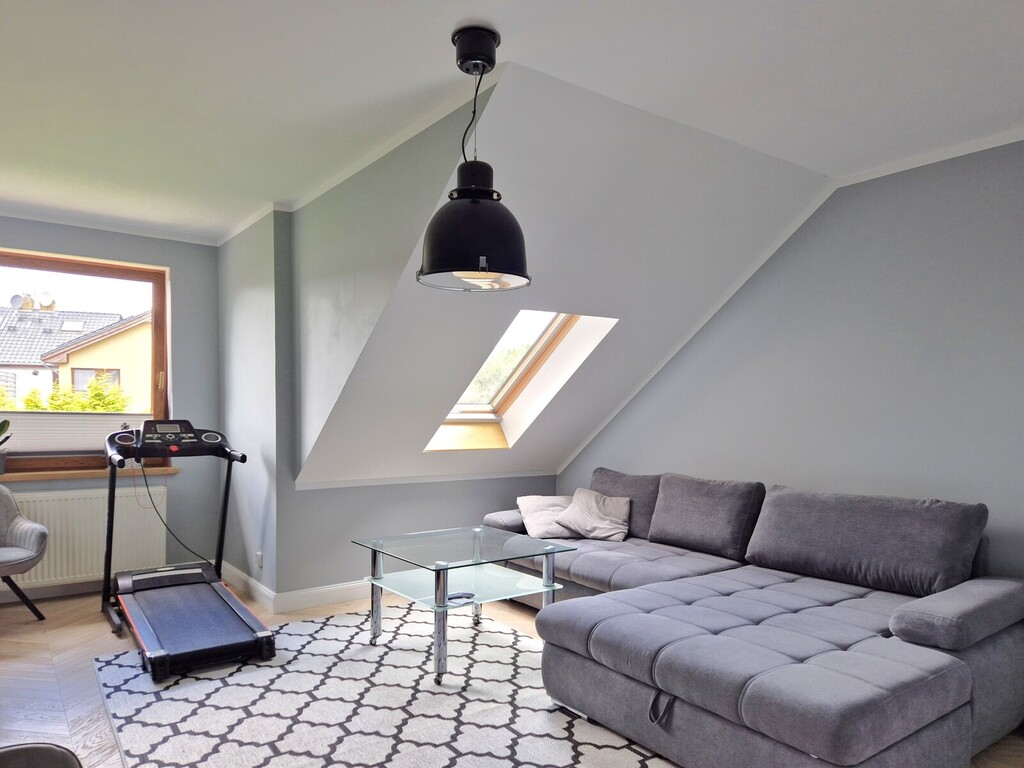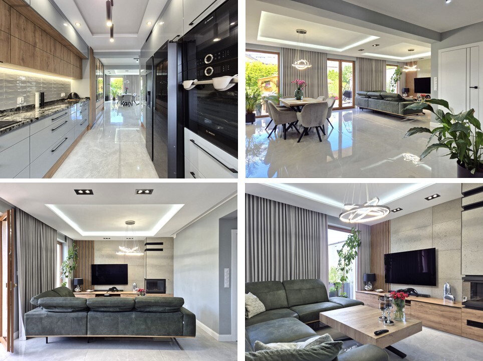 – spacious living room with a separate dining room and relaxation area, with access to the terrace, well-lit thanks to large windows and various light sources inside, and also equipped with a fireplace with a new insert