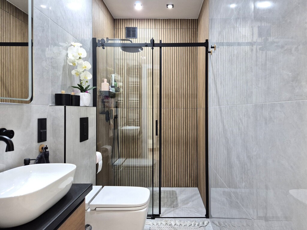 – the entire lower level is covered with beautiful polished stoneware in dimensions 120×120