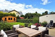 * a large, brand new terrace that can easily accommodate rattan garden furniture, hanging armchairs and several sun loungers