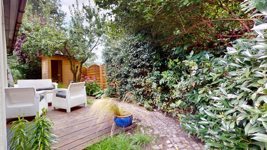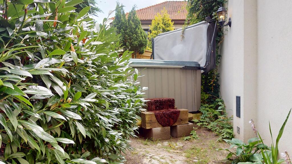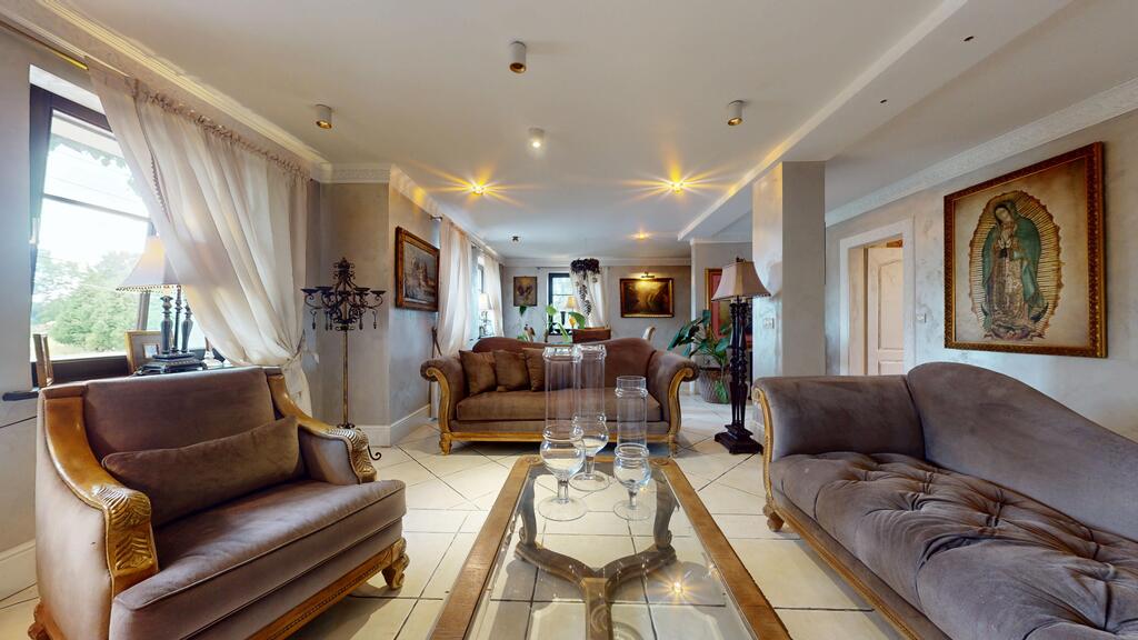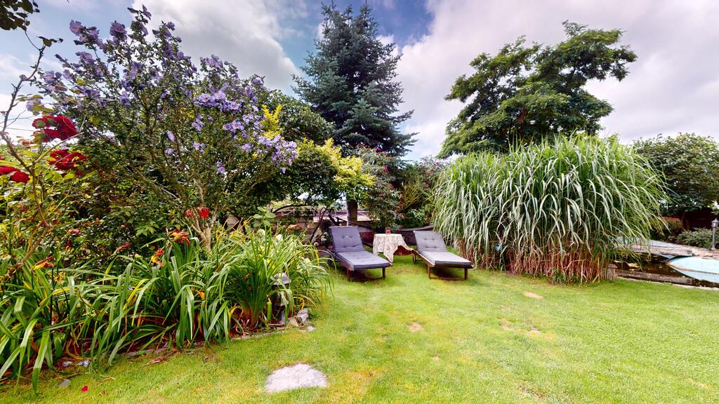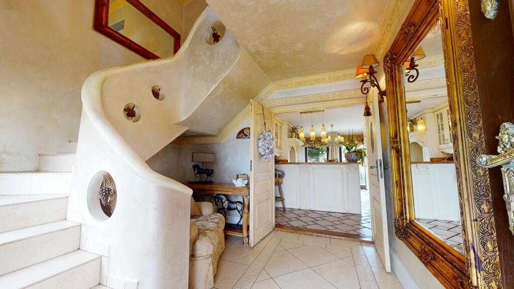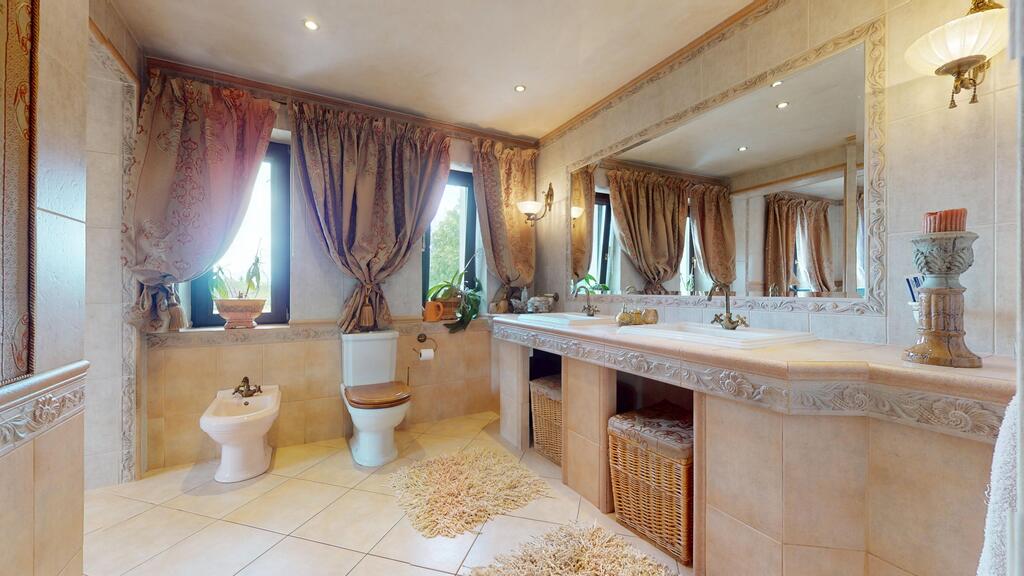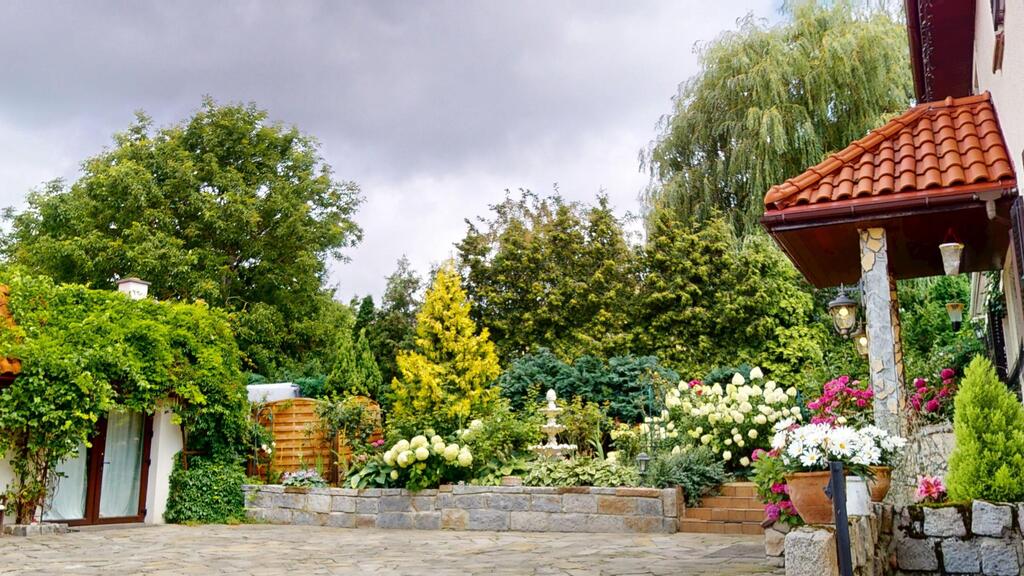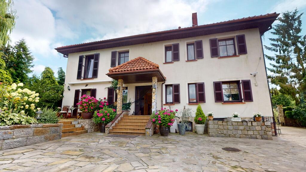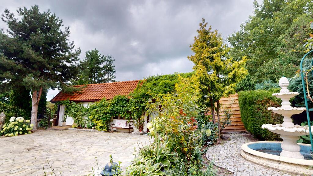 The house is surrounded by a beautiful garden, with numerous plantings, shrubs, a pond, and a fully automated irrigation system. The property also includes a guest house (living room with kitchenette, two bedrooms, bathroom with toilet), sauna, and jacuzzi. See photos for room standards.