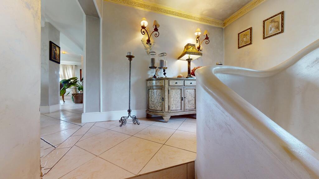 The residence was designed with the utmost attention to detail, with a Mediterranean atmosphere that captivates from the first glance. The bright exterior, warm interior colors, ceramic floors, spacious terraces, open-plan living areas, and meticulously landscaped gardens evoke the villas of Southern France or Tuscany, Italy.