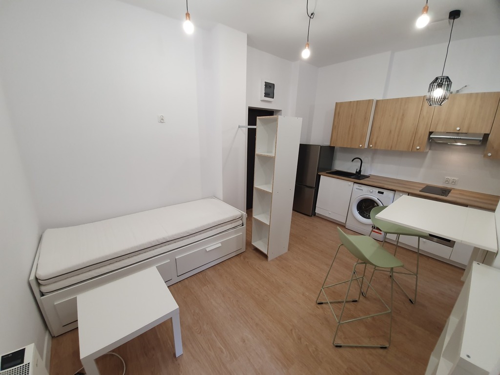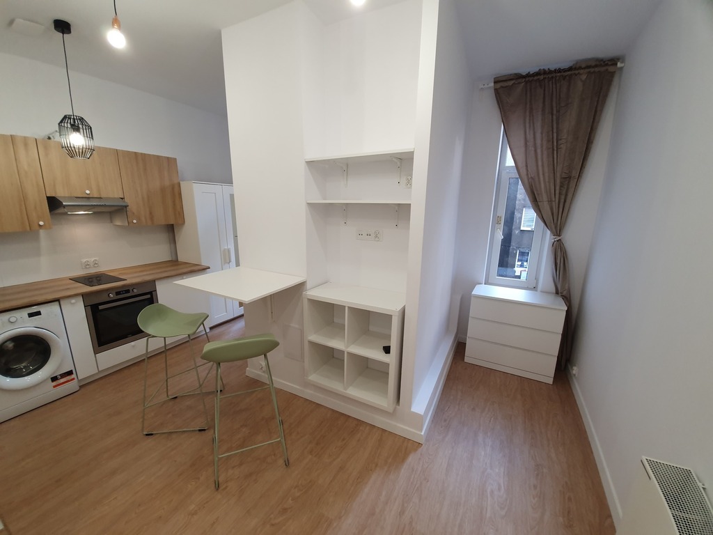 For rent, a one-room apartment (studio) on the first floor of a tenement building at 4 Piastów Street. Excellent transport links to the entire city. The apartment is approximately 22 square meters and consists of: a living room with a kitchenette, and a bathroom with a shower. The apartment is furnished and equipped as shown in the photos. Great location, close to everything and public transport to all parts of the city. Additional fees are 650 PLN for utilities (electricity, water, heating, and internet) – no additional fees. Perfect for someone who wants to be close to everything. Security deposit 2500 PLN.