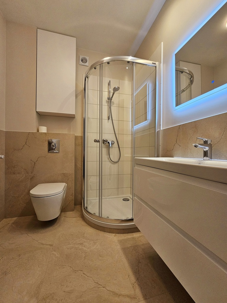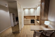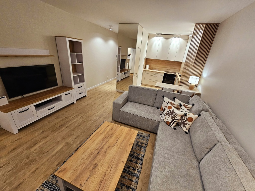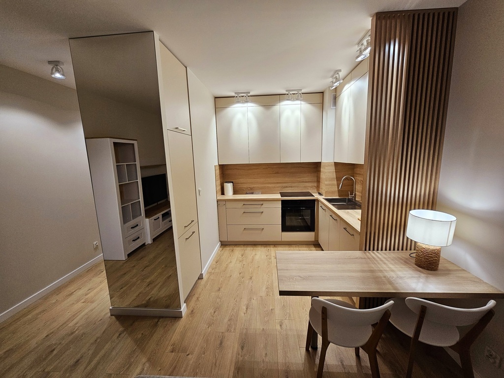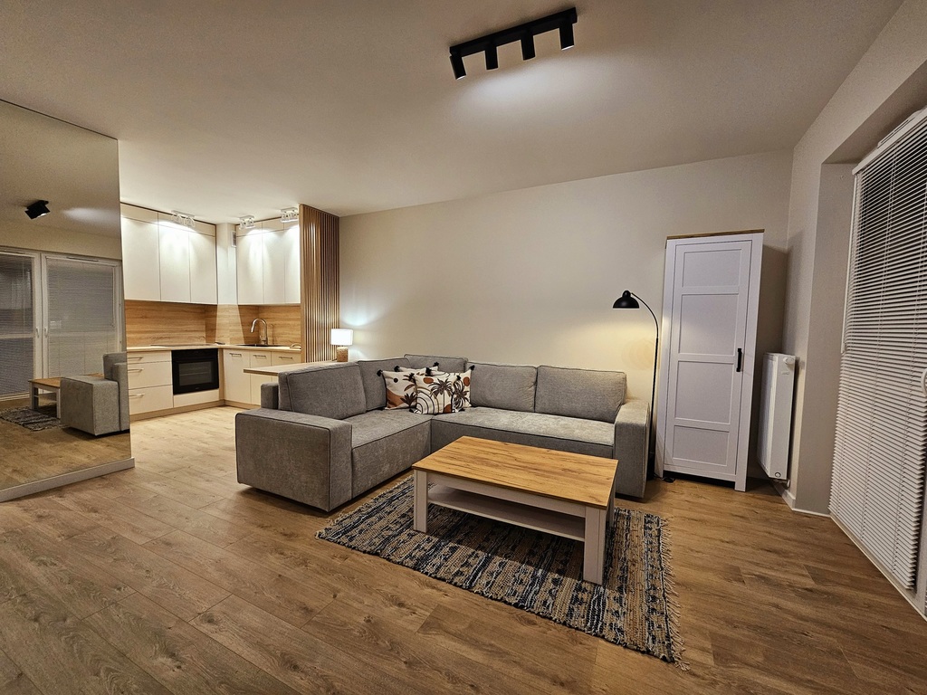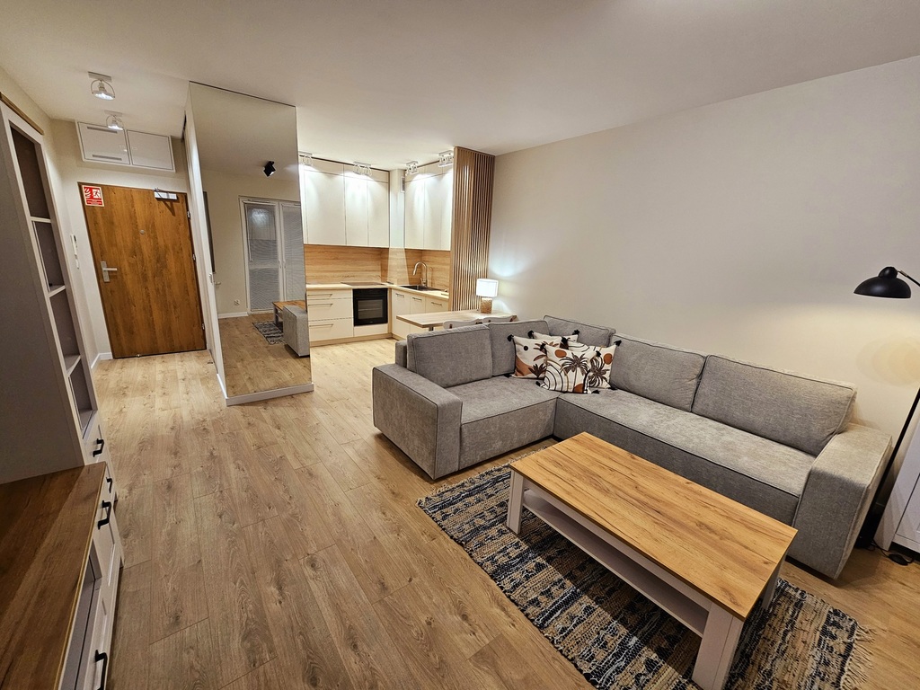 We offer a studio apartment for rent on the fourth floor of a new apartment building with an elevator at Sowińskiego Street in Szczecin. The area of 34.5 m2 consists of a room with a kitchenette and access to the balcony, a hall and a bathroom with a toilet. The apartment has not been inhabited before, very tastefully and carefully finished, absolutely fully furnished and equipped (including an iron, kitchenware, ironing board, duvet, pillows, etc.). Costs: rent PLN 2,100, rent for the manager with advance payments for heating and water PLN 540, electricity. A deposit of PLN 2,100 is required. Contract for a minimum period of one year – occasional lease or contract with a company. Quick release of the offer. I cordially invite you to the presentation.