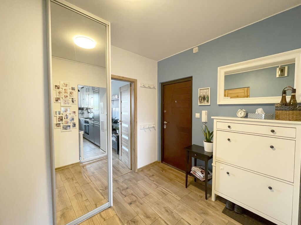 Description: For sale: a renovated, sunny 2-room apartment with an area of 47.54 m², located in the Księcia Bogusława housing estate in Police. The ownership is a cooperative ownership right to a residential unit. The apartment is located on the third floor. The 47.54 m² apartment comprises a living room with access to a spacious balcony, a bedroom, a rectangular kitchen, a bathroom, a toilet, and a square hallway. The walls are smooth and painted, and the floors are laminate in the bedrooms, with stoneware in the hallway and kitchen. The windows are PVC, and the balcony room has an external roller shutter. The kitchen is equipped with built-in kitchen appliances (refrigerator, dishwasher, electric oven, and gas hob). The apartment includes a basement and shared facilities, such as a storage room for prams and a drying room. Great location, close to all city infrastructure: schools, kindergartens, hospitals, shops, and excellent access to public transportation. The price includes built-in kitchen appliances and a built-in wardrobe in the hallway. I invite you to a viewing.