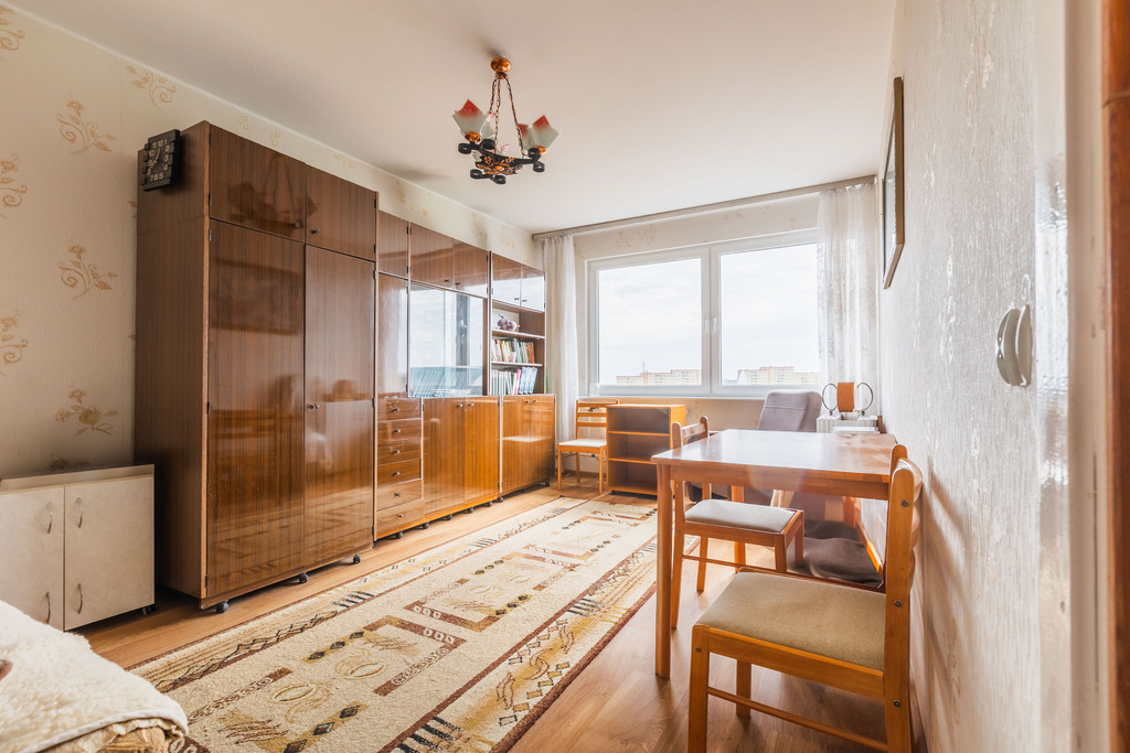 For sale: a 32.29 sq m studio apartment on the top, 8th floor, with unobstructed views of the forest and Police. The building has a renovated elevator from 2016.