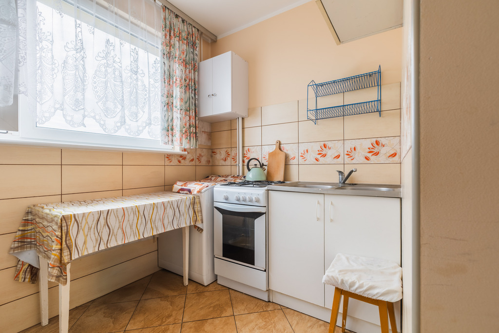 • kitchen 5.5 m2 – has a gas connection and a recess for a refrigerator and built-in furniture