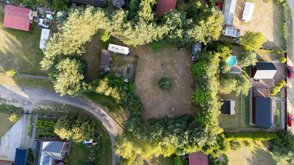 The plot is located in the Kicko Letnisko housing estate, approximately 150 m² from Lake Grabowskie. Single-family homes have been built and operated in the immediate vicinity.