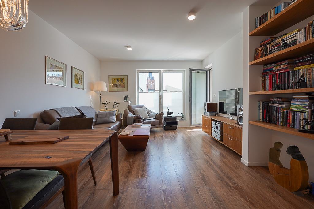 A highly sought-after and attractive location. Close to the Pomeranian Dukes' Castle, the Philharmonic Hall, theaters, restaurants, cafes, and Podzamcze, yet located on a quiet, intimate street in the center of the Old Town. The Mariacka apartment measures 47.62 m², and on the same floor is a 3.59 m² storage unit with shelving, providing space for suitcases, sports equipment, and other less frequently used items. A parking space is available in the garage, accessible by elevator. The parking space can be sold separately, but is not part of the sale of the apartment. Parking space available for an additional fee of PLN 100,000. Storage unit available for PLN 20,000. APARTMENT DESCRIPTION: Living room with kitchenette (26.75 m²) with access to a 3.88 m² south-facing loggia balcony, two built-in wardrobes, and another in the hallway. The kitchen features high-quality built-in cabinetry and appliances: electric hob, electric oven, dishwasher, refrigerator with freezer, and illuminated countertops. The bedroom measures 11.53 m², with a single wardrobe in the bedroom, the bathroom 4.51 m², and the hallway 4.83 m². The bathroom is 4.28 m². The bathroom features tiles and terracotta, a comfortable bathtub, a washbasin with a stoneware countertop, and a washing machine. A towel rail radiator can be connected to the mains. The apartment is finished with high-quality materials. Fully furnished and equipped. RUNNING COSTS: PLN 480 rent, plus heating and hot water from the district heating system, electricity, and cold water. BUILDING DESCRIPTION: The building was constructed in 2017 of silicate blocks and has very good thermal insulation. Easy access from the city via the Castle Route or the Long Bridge. Offers in this location and building are rare.