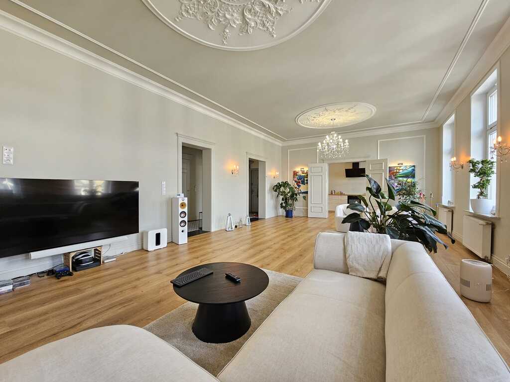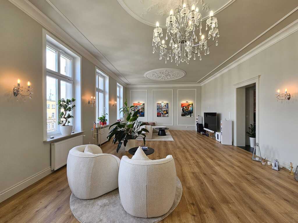 We have a unique offer for you of a beautiful apartment in a renovated tenement house located in a charming part of the City Centre of Szczecin. The apartment with an area of 124.25m2 in the land and mortgage register (as a result of removing a wall of about 130m2) is located on the 3rd floor not far from Aleja papieża Jana Pawła II. This is a representative part of the Centre with tenement houses included in the register of monuments. The layout of the rooms is flexible. A beautiful and huge living room of about 50m2, created by combining two rooms, very well lit thanks to four windows. A bedroom with an originally preserved red brick wall, with space for a wardrobe and a passage to a private bathroom with a window. A smaller room serving as a study. From the living room, a passage to a spacious, fully equipped kitchen. From the corridor we enter the second bathroom, in which there is a new second-circuit gas boiler, shower, sink and toilet. High-class panels on the floor, hotel carpet in the rooms, mosaic in the hallway. Numerous gypsum decorations on the walls and ceilings give the interior an incredible atmosphere. Numerous wall lamps and crystal chandeliers emphasize the character of the apartment. Custom-made door joinery, which will be appreciated by the most demanding customers. The whole finished with the highest quality materials with attention to detail. The property after a general renovation. Old plasters were removed and new, putty walls and ceilings were laid, all electrics, water and sewage installations were replaced, 20 cm wool and vapor-permeable foil were laid on the ceiling, just like in the property one floor below, the floor in the bedroom and in the office is insulated and soundproofed with cotton wool. Administrative rent at the level of PLN 560, (rent PLN 210 + renovation fund PLN 348) including advances for cold water, cleaning of the staircase, garbage collection and renovation fund. The apartment includes a large basement. The elevation of the tenement house has been renovated. If you are looking for a comfortable apartment in the Center, spacious, with beautiful stucco, we invite you to see this extraordinary offer. Call and arrange a presentation! We invite you!