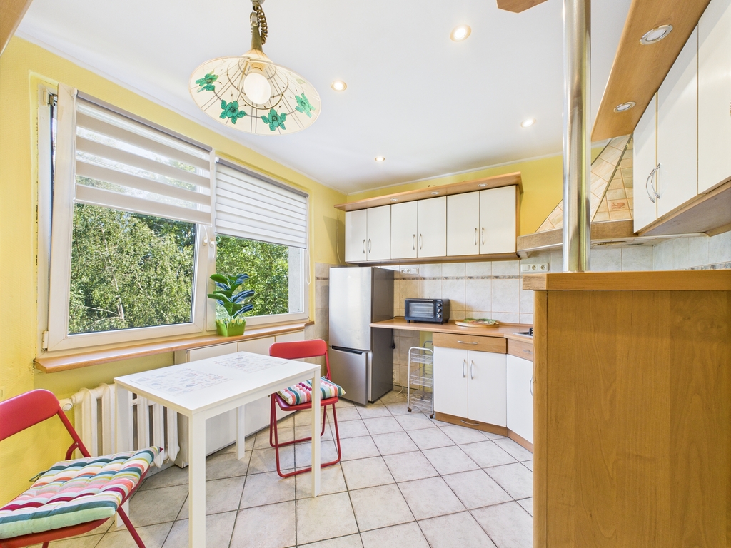 We invite you to explore this 35.95 sq m apartment, located in a quiet part of the Arkońskie housing estate. The apartment is located on the third floor of a four-story building without an elevator. It comprises a living room overlooking the park, a separate kitchen, a bathroom with a bathtub and a toilet, and a hallway. The property is in good condition – fully equipped and furnished with functional appliances and electronics. Utilities and fees include: 1800 PLN per month rent + 586 PLN housing cooperative rent (prepayments for water, heating, and gas) + 107 PLN renovation fund. Heating and hot water are provided from the municipal network. Electricity is also charged based on consumption. One-month security deposit required. Occasional lease for a minimum of one year. Available immediately. Location: The apartment is superbly located on Zdrojowa Street in the Arkońskie housing estate – right next to the park, close to the Arkońskie Forest and Arkonka Water Park. An ideal place for those who enjoy walking and sports – plenty of recreational areas. Excellent transport links – the city center is just a few minutes away. Public parking spaces are available in front of the building. I invite you to a viewing.