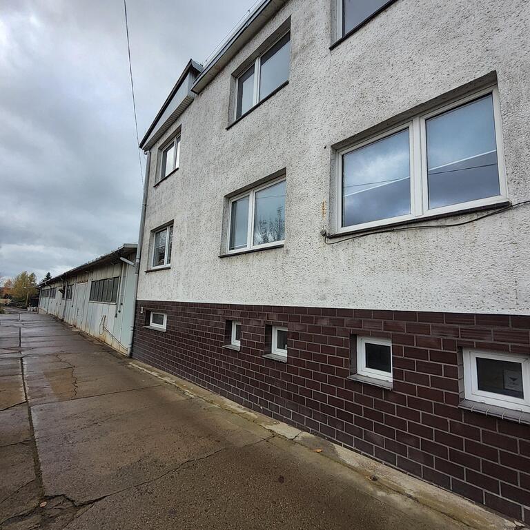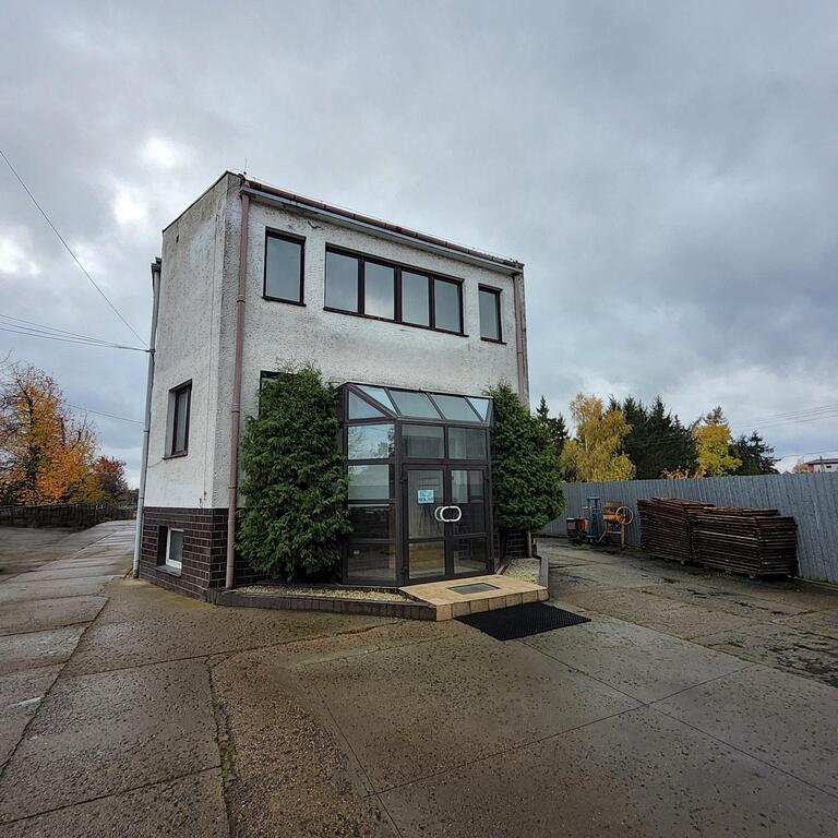 For sale: an office, workshop, and warehouse building situated on plots with a total area of 9100m². The building comprises: – two halls of 490m² and 389m² (accessed via ground-level metal gates and a ramp), constructed of sandwich panels; – a 220m² canopy; – a 210m² brick office building; – a 70m² shop with a staff room; – other areas. Building height: 4-5m. Utilities: electricity, water, gas, and sewer. The property is fenced, with truck access available. I highly recommend and invite you to a viewing.
