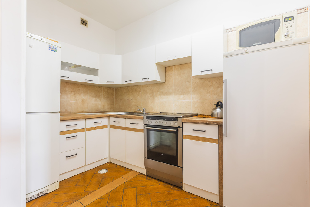 - Apartment approx. 100 m² (possibility of simple division into 2 apartments of 50 m² each) – a total of 4 rooms, two bathrooms, 2 kitchens