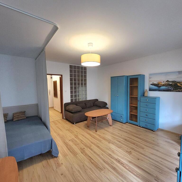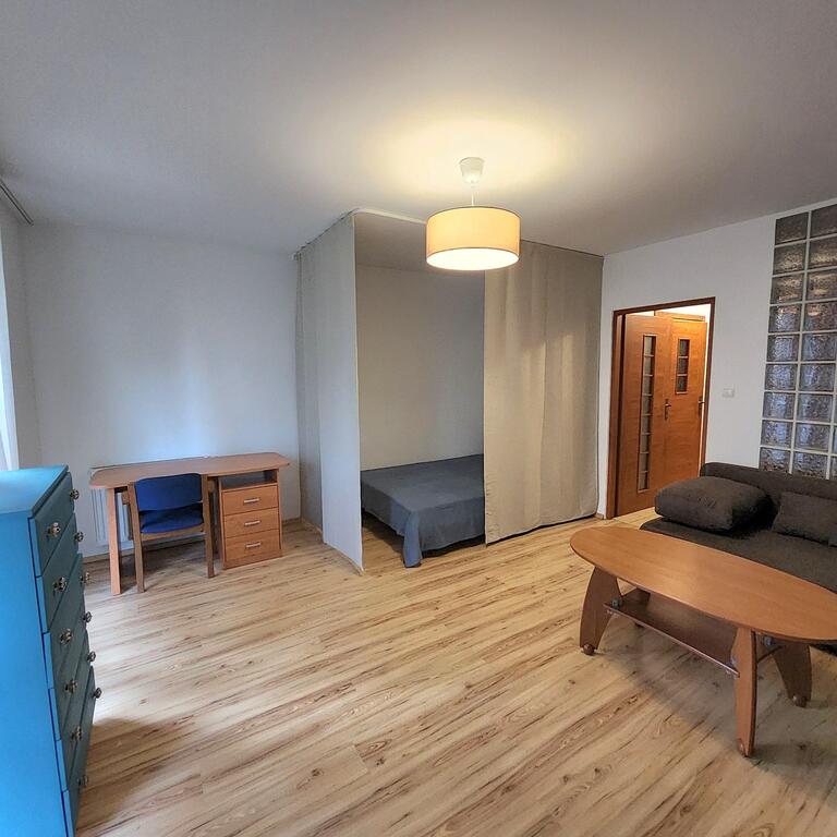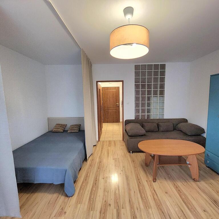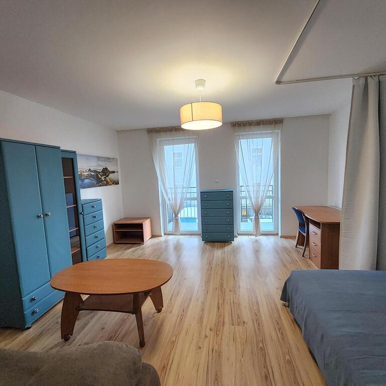 Studio apartment for rent in central Szczecin, on the first floor of a 2007 building with an elevator. The approximately 31m² apartment comprises: a 21m² room with a separate bedroom with access to a large balcony, a 3.4m² kitchen, and a bathroom with a toilet. PVC windows. Laminate floors, painted walls, and PVC windows. Heating and water are provided by a dual-circuit gas boiler. Additional fees (approximately 302 PLN) are payable to the property manager, along with electricity and gas. The apartment includes a cellar. Parking is available in the courtyard, which is locked with a remote-controlled gate. The security deposit is 3000 PLN. I recommend this apartment due to its standard and location.