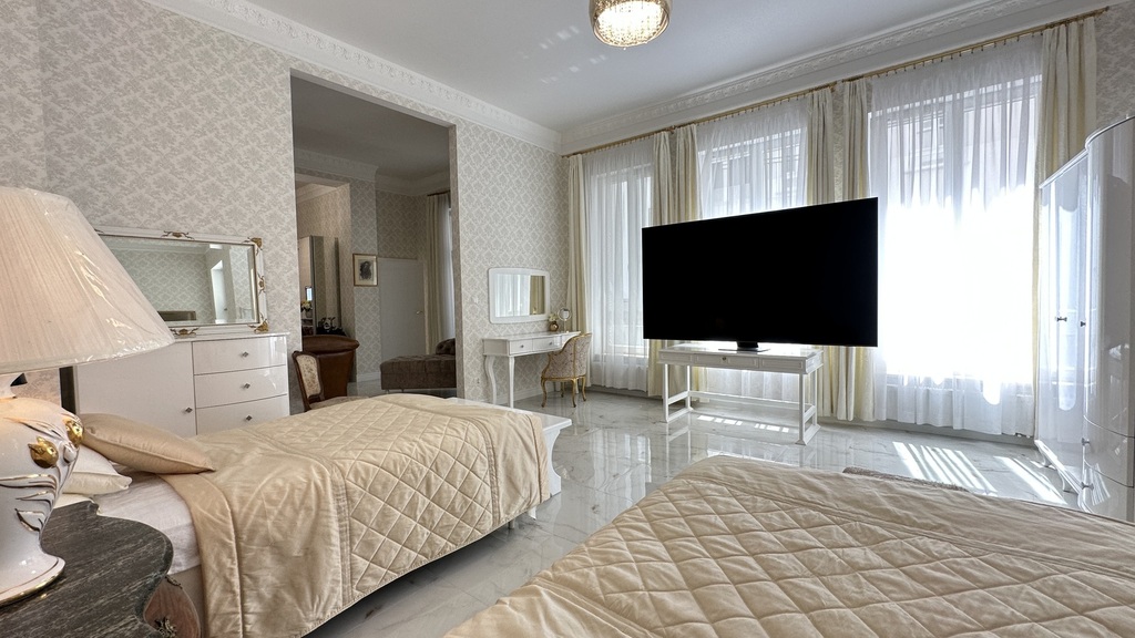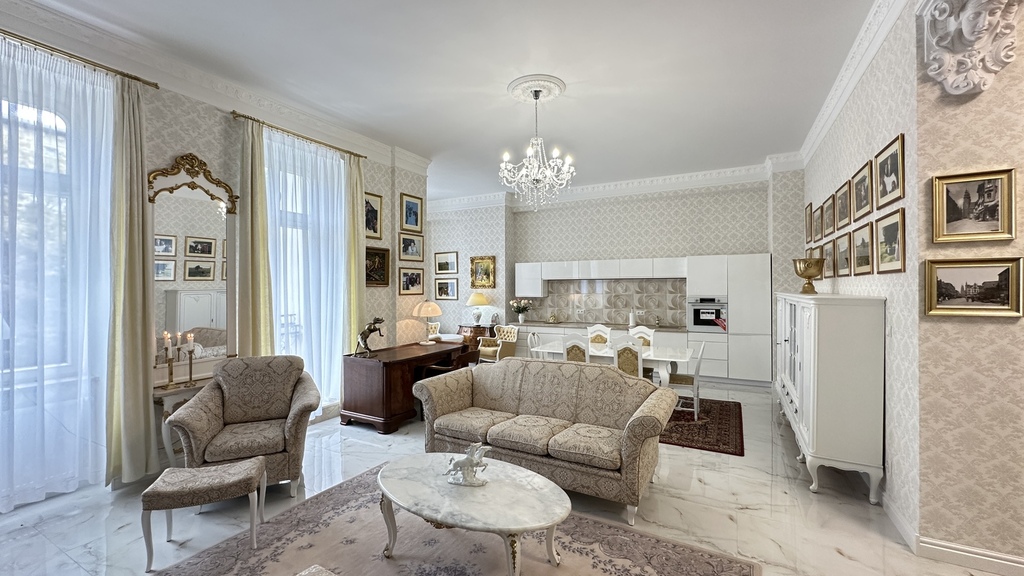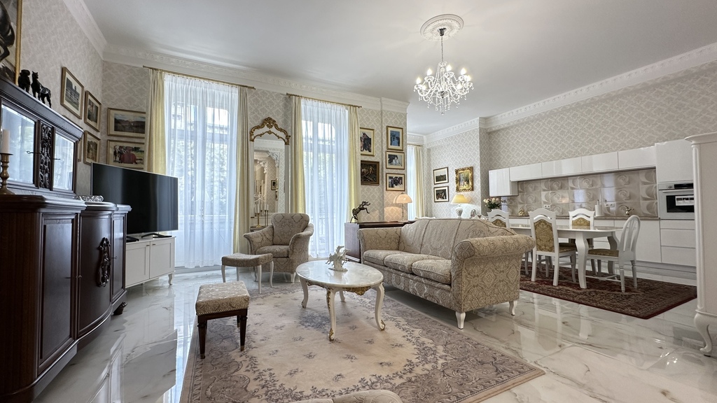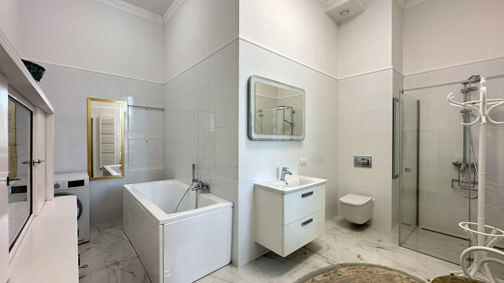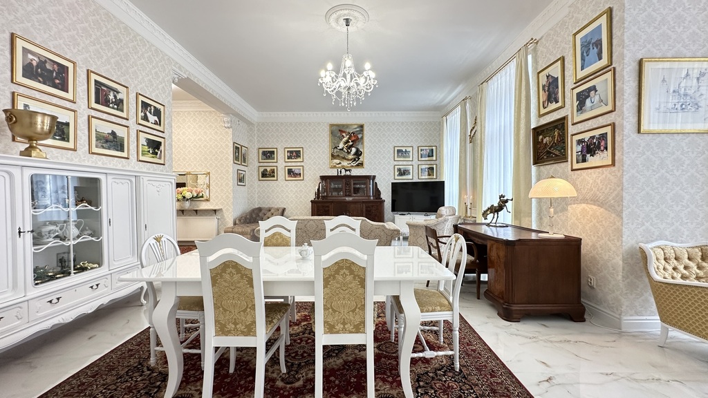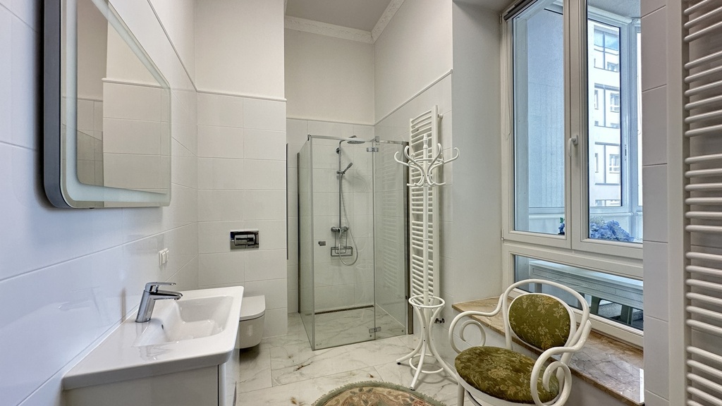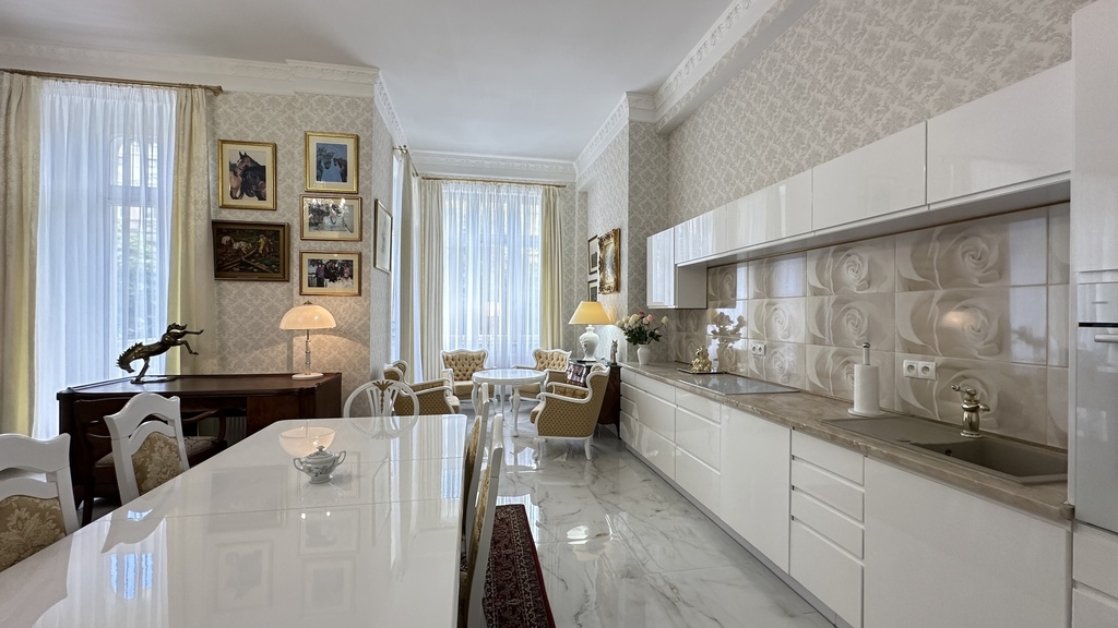 CENTER, 46 Śląska Street – for sale, a unique, one-of-a-kind, and luxurious apartment with a unique character in a new (2020), very attractive, and original tenement building with preserved and meticulously restored pre-war facades. The entire interior of the entire block of tenement buildings was demolished and rebuilt practically from scratch, preserving the height, layout, and functionality of the rooms. High-quality materials were used in the construction and finishing, and every detail was meticulously considered. In addition to the stunning staircases, beautiful tiles, and lamps, the building also features high-speed elevators. Heating and hot water are provided from the municipal network. There is no gas in the building. The entire construction process was monitored by Szczecin residents for several years. We are proud to present you this unique, luxurious, high-rise, and spacious apartment with three balconies in one of the most beautiful, gradually modernized parts of Szczecin – in the heart of the city, right next to Al. John Paul II, Jasne Błonia and Kasprowicz Park, Wały Chrobrego and Żeromski Park, the Pomeranian Dukes' Castle, the Oder River and its beautiful boulevards, as well as the City Hall and many exquisite restaurants, the Kaskada Shopping Center, and the vibrant city center. The apartment – luxury, space, and light. With an area of approximately 151.44 m² and a ceiling height of 3.60 m, it is located on the first floor and consists of: – a representative living room with large windows and beautiful woodwork, – a bright, spacious kitchen with a dining area, – a master bedroom with a walk-in wardrobe, – a study with a comfortable seating area, – an elegant bathroom with high-end fixtures, – a functional hallway. The interiors have been finished with attention to every detail: noble materials, high ceilings, granite floors, stylish lighting, modern technology combined with beautiful antique furniture create a unique space combining classic and modern styles. Why this tenement house is worth considering: a historic building with a soul, fully renovated, with luxurious finishes and move-in ready. It boasts a prestigious location in the center of Szczecin, close to restaurants, parks, offices, the Philharmonic, the Theater, and public transportation. It's a quiet and safe environment, ideal for living and working. This offer is for those who value luxury in the heart of the city, but also an excellent investment, guaranteeing rental income in an apartment at the most affordable price point. We have the keys and invite you to a viewing.