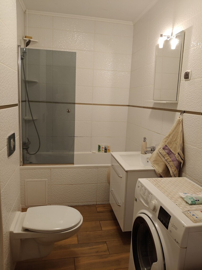 City Center. Parkowa Street, near the Water Factory. This two-room apartment, 42.7 m², with a large balcony is located on the first floor of a new apartment building built in 2017. Despite its small size, the apartment is very functionally arranged. Built-in wardrobes and other built-in furniture are featured in both the hallway and living room. The 19.4 m² living room features a kitchenette and an island with a worktop. Built-in kitchen units include appliances (induction hob, extractor hood, electric oven, dishwasher, and fridge-freezer). Laminate flooring in the kitchen and hallway. The 10.3 m² bedroom has a balcony window. The bathroom is decorated in light colors and has a bathtub, sink, and toilet. New PVC windows. Rent is approximately 300 PLN/month, with heating and hot water from the SEC (winter bills are 200-300 PLN/month), plus additional charges for cold water and electricity based on consumption. The apartment is centrally located and very warm. Wide, spacious staircases and a modern high-speed elevator. A large courtyard with an adjacent children's playground is located at the rear of the building. The grounds are well-maintained, with plenty of greenery, walking paths, and proximity to public transportation. Numerous parking spaces are available around the building. Rent is 2500 PLN + 300 PLN community fee + cold water, heating, and electricity bills. A 2500 PLN security deposit is required; this is an occasional lease. I highly recommend this apartment and invite you to a viewing.