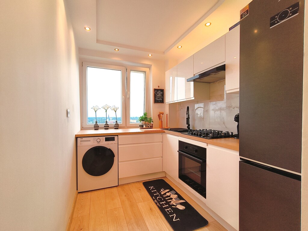 The apartment is in a prime location in the Słoneczne neighborhood, approximately 100 meters from the main street. It’s a quiet and peaceful neighborhood with plenty of greenery (parks, the Bukowa Forest) and numerous recreational opportunities, including sports fields, playgrounds, and an outdoor gym. Nearby, you’ll find numerous educational institutions (nurseries, kindergartens, and schools), retail outlets (the Słoneczne shopping center, the Neo shopping center, and discount stores), restaurants, clinics, and pharmacies. A bus stop is right next to the building, providing quick and convenient access to the city center.