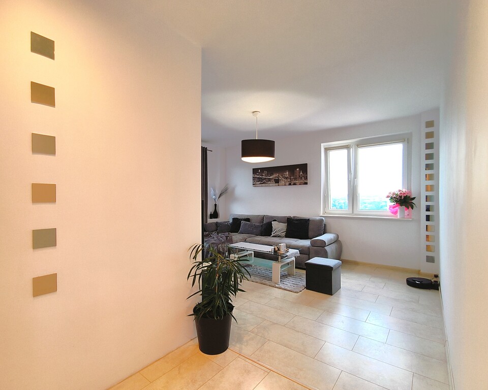 For sale: a comfortable and spacious 4-room apartment finished to a high standard, located on the 11th floor of a high-rise building, in the Słoneczne neighborhood on the right bank of Szczecin. Nearby are a park and the Beech Forest.
