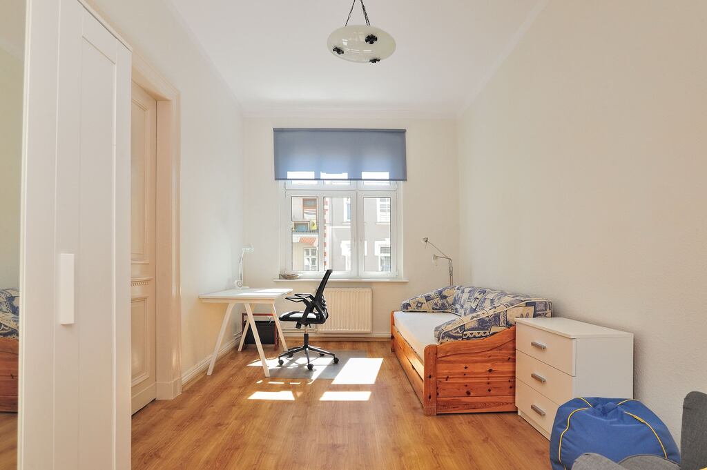 We are exclusively offering room no. 3 in a 3-room apartment located on Mazurska Street. ROOM DESCRIPTION: For rent, a room with an area of approximately 20 m² is located in an apartment located on the second floor of a 4-story tenement building. The room is furnished with a bed, desk, chair, armchair, wardrobe, and chest of drawers. APARTMENT DESCRIPTION: The total area of the apartment is 96.04 m², with all common areas equipped with all necessary amenities. The apartment comprises 3 rooms, a kitchen, a pantry, a bathroom with a toilet, and a hallway. The bathroom is equipped with a shower, a washing machine, a sink with a mirror, a toilet, and a towel rail radiator. The kitchen is furnished and equipped with appliances including a refrigerator-freezer, an electric oven, a gas stove, a dishwasher, a microwave, an electric kettle, and a coffee machine. An additional room in the apartment is a pantry, perfect for storing less-needed items. SURROUNDINGS: This apartment is located practically in the center of Szczecin. Nearby, you'll find numerous retail and service outlets (including a Żabka store, a pet shop, a post office, a hairdresser, and a bookstore), as well as numerous dining options, such as restaurants and cafes. The Galaxy and Kaskada shopping centers are also within walking distance. Public transportation, including bus and tram stops, are also nearby. COSTS: Rent is PLN 1,000 per room. Additionally, there are PLN 500 per person prepayments for utilities throughout the year, including electricity, heating, and hot water heating in a dual-function boiler (commonly called a "gas furnace") based on usage. Please contact us by phone between 9 a.m. and 5 p.m. (please text me during other hours).