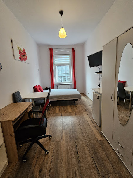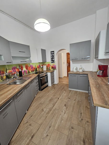 We offer for sale an 8-room apartment on the third floor in a renovated tenement house in the center of Szczecin. 200-300 m from the railway station, bus station, tram, university, etc. There is a very well-kept staircase in the tenement house. The building's water, sewage and gas installations have been replaced. There is power in the apartment, the entire electrical installation is new. Anti-burglary external doors, room height 3.20 m. Scheduled rooms, each with a lock. A large, equipped kitchen adapted to this type of use of the property. Three bathrooms with showers, sinks and toilet. The rooms have PVC windows, wooden floors and painted walls. Large hall. Gas heating The apartment "works" as a hostel and brings constant income at all times. The apartment includes a basement of approx. 30 m2. I recommend and invite you to the presentation. Keys in the office.