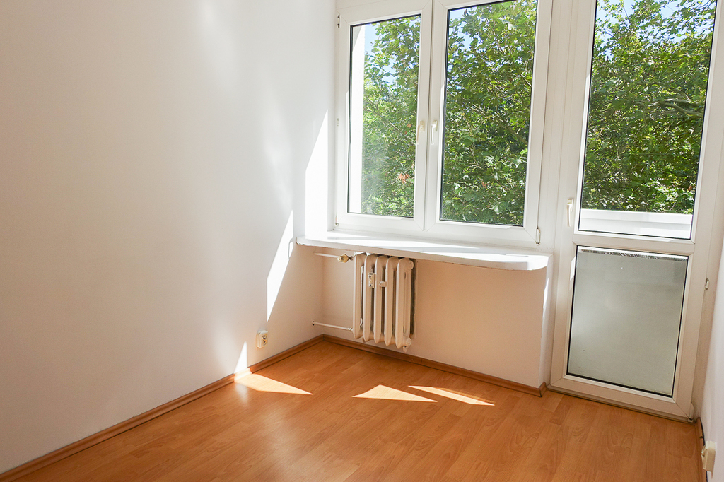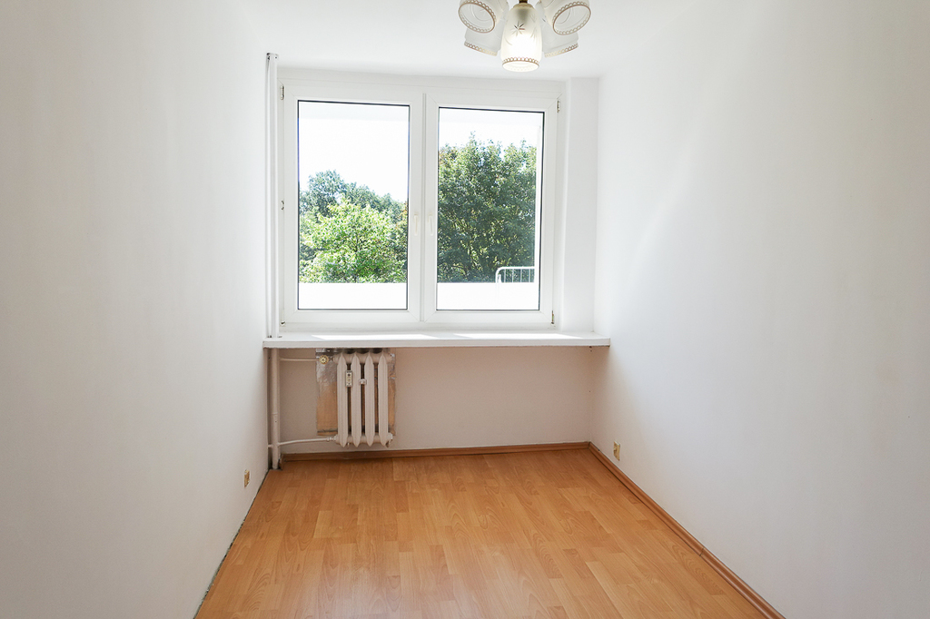 Located near Kasprowicza Park, this well-maintained 3-room apartment offers 46.85 m² of living space, a separate, bright kitchen, and a large loggia balcony. This apartment is located on the third floor of a high-rise building. Cooperative ownership rights to the property are available. This is a great option for your own needs or as a rental investment. APARTMENT DESCRIPTION: Rooms are 14.4 m², 9 m², and 8.8 m². Floors are laminate, and walls are smooth and painted white. A separate 4.12 m² kitchen features a window, a GORENJE gas stove with oven, a sink with a new cabinet, and terracotta floors. The 3.4 m² bathroom features a bathtub, a washbasin, a new toilet, and space for a washing machine, all finished in both tile and terracotta. The 4.2 m² hallway has space for a 1.1 m long wardrobe in the hallway. The doors are in good condition and the windows are PVC. The water and sewage lines have been replaced throughout the building. Heating and hot water are provided by the municipal network. Gas boilers have been removed from the entire building. Windows overlook the park on the east side, and the balcony offers a view towards Hołdu Pruskiego Square (south). BUILDING DESCRIPTION: A skyscraper built in 1970 with prefabricated concrete slabs, two modern elevators, and CCTV at the entrance and stairwell. RUNNING COSTS: 530 PLN rent, which covers operating costs, hot and cold water, sewage, and garbage collection. LOCATION: Near Galaxy, Żeromskiego Park, within walking distance of Wały Chrobrego and the Oder River. Near the Rodła Square transportation hub.