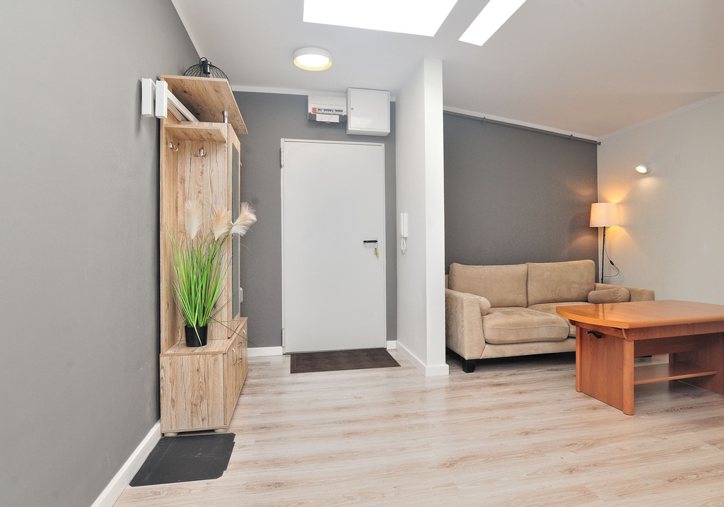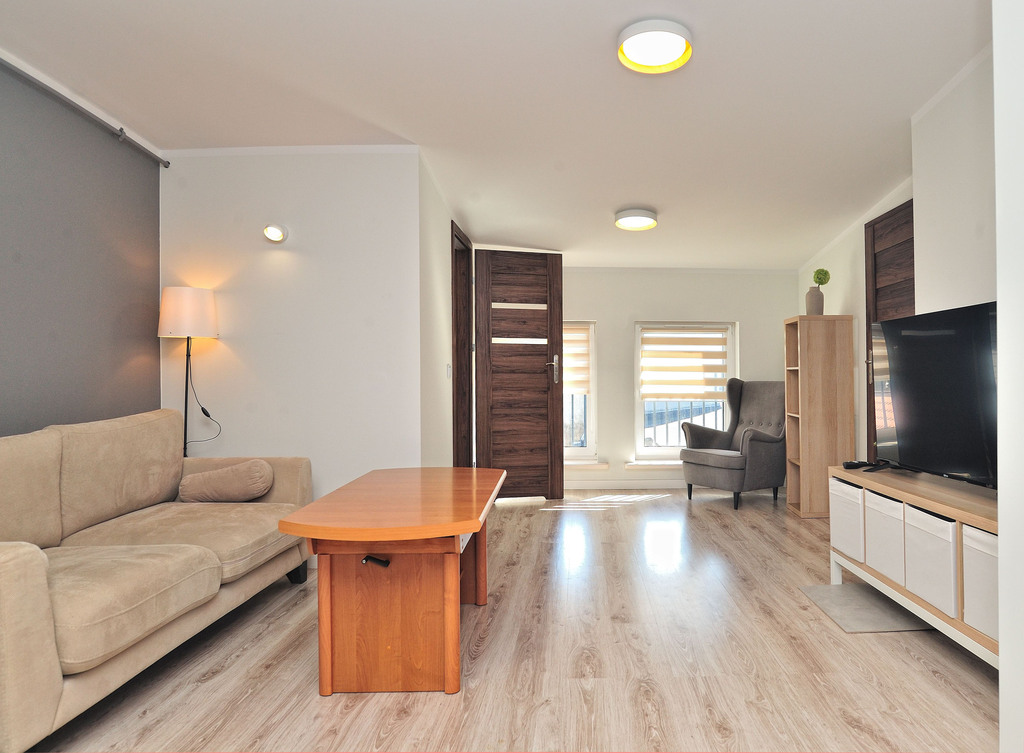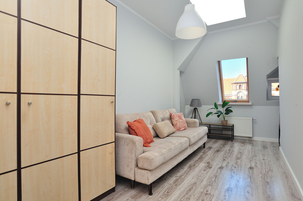 We are exclusively offering a 3-room apartment for rent located on Piastów Avenue in the city center. The apartment was created as a result of a new attic conversion. APARTMENT DESCRIPTION: With a total area of 54.38 m², the apartment comprises 3 rooms: an open-plan living room, kitchen, two separate bedrooms, and a bathroom with a toilet. The apartment is fully furnished and equipped. Entrance to the apartment is through an open hallway with a wardrobe. The bathroom is finished with modern tiles and terracotta and includes a shower cabin, toilet, and sink. The kitchen is furnished and equipped with new appliances: an induction cooktop with oven, extractor hood, dishwasher, refrigerator-freezer, and washing machine. The bedroom features a bed with a comfortable mattress, a bedside table, and a wardrobe. The living room is furnished with a sofa bed, coffee table, bookshelf, and TV. The third room consists of a fold-out sofa, a spacious wardrobe, clothes dryers, and a small table. Heating and hot water are provided by a dual-function gas boiler with a closed combustion chamber, commonly known as a dual-circuit gas furnace. LOCATION: The apartment is located on Piastów Avenue, providing residents with excellent transport links and access to numerous city attractions. Residents who value participating in city life can reach the Kaskada and Galaxy shopping malls in 5 minutes. Faculty departments of various universities, including West Pomeranian University of Technology and the University of Szczecin, are located nearby. SURROUNDINGS: Nearby are numerous services and shops, kindergartens, a primary school, a clinic, a primary school, and a high school; there are also numerous MZK bus and tram stops, as well as restaurants. COSTS: In addition to the PLN 2,600 rent, approximately PLN 336.98 for administrative fees and gas and electricity costs must be added. SUMMARY: I recommend it due to the standard of workmanship and location. It also has slight slopes, which is rare in attics. Please contact me by phone weekdays between 9am and 4pm (text messages are available at other times). Keys are in the office. I highly recommend it and encourage you to contact me.