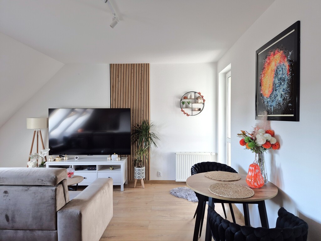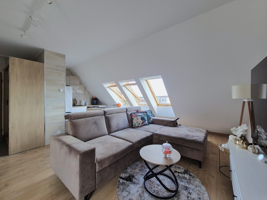 For sale is a unique apartment in a new building, with 57.8 square meters of usable space, located on the 4th floor in a prime location on Iwaszkiewicza Street in Szczecin (Majowe Housing Estate). Thanks to the sloped ceilings downstairs and a large usable attic, the apartment offers almost 100 square meters of total space! It is very clean, well-maintained, and cozy, and after a refresh – move-in ready.