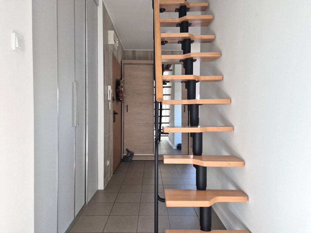 * hall with a spacious wardrobe at the entrance and a small wardrobe behind sliding doors, where you can also store everyday items, e.g. a vacuum cleaner or an ironing board