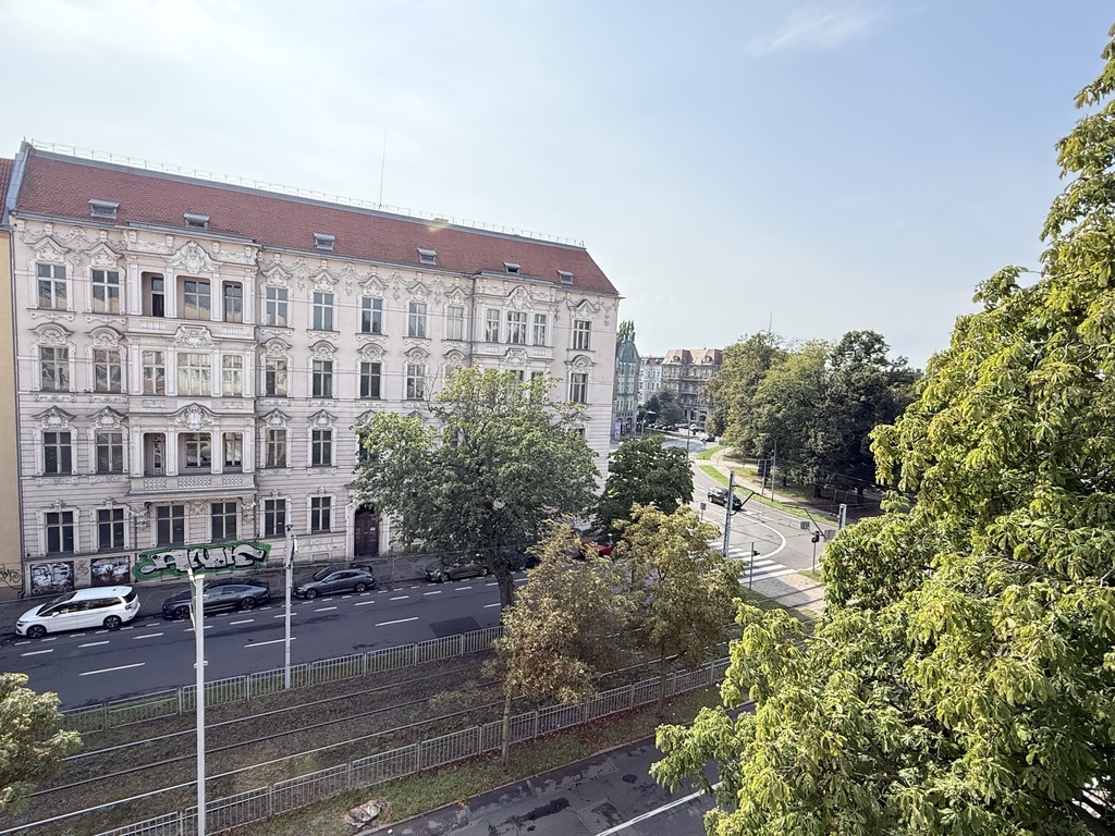 A sunny three-room apartment for sale on Piłsudskiego Street , located in a low-rise building in the city center, right next to Grunwaldzki Square .
