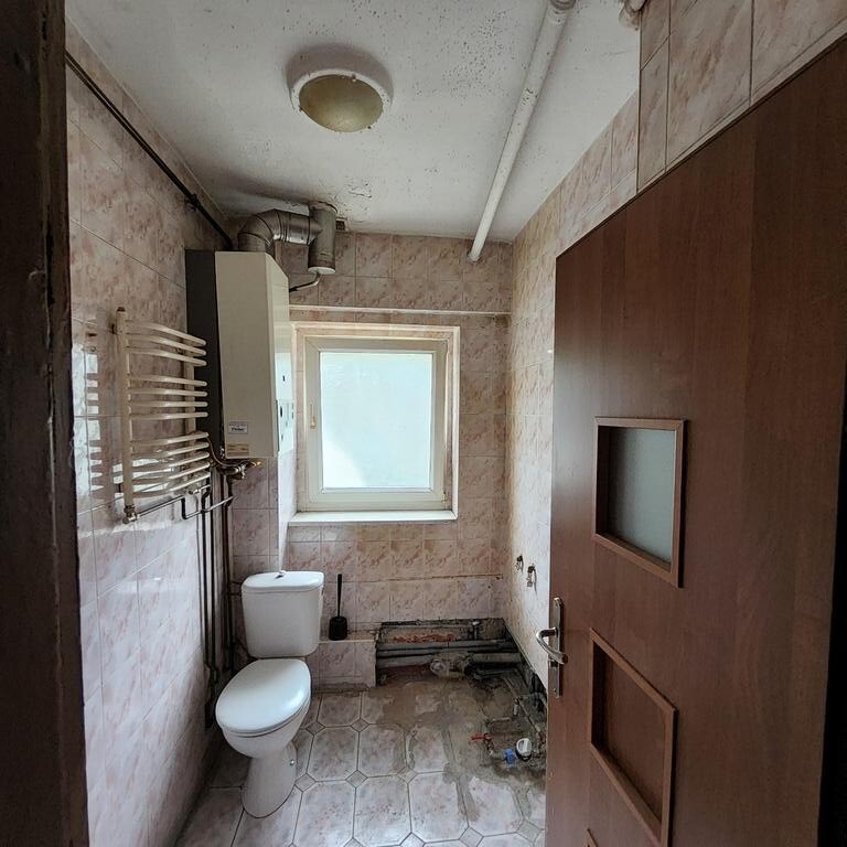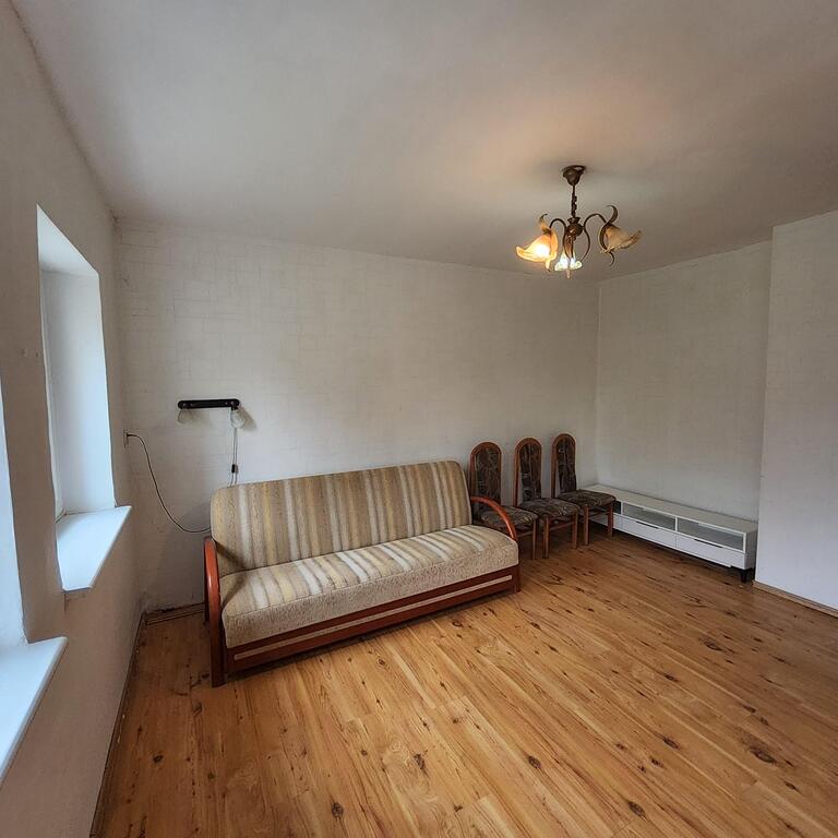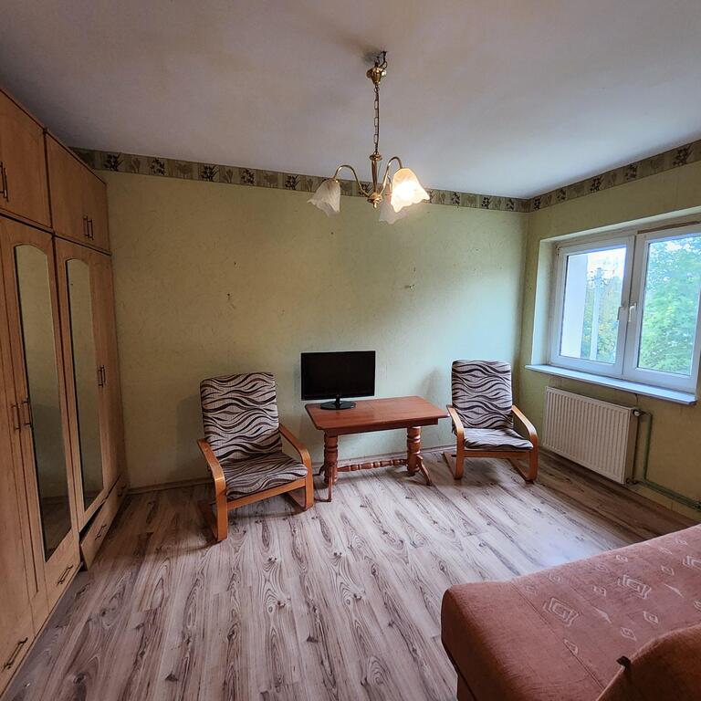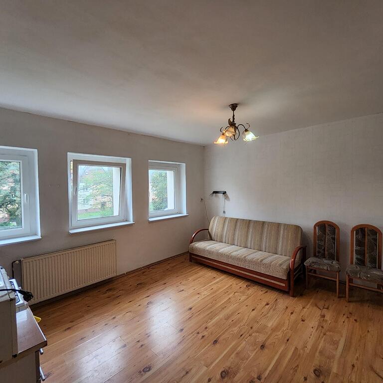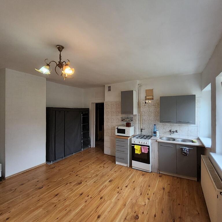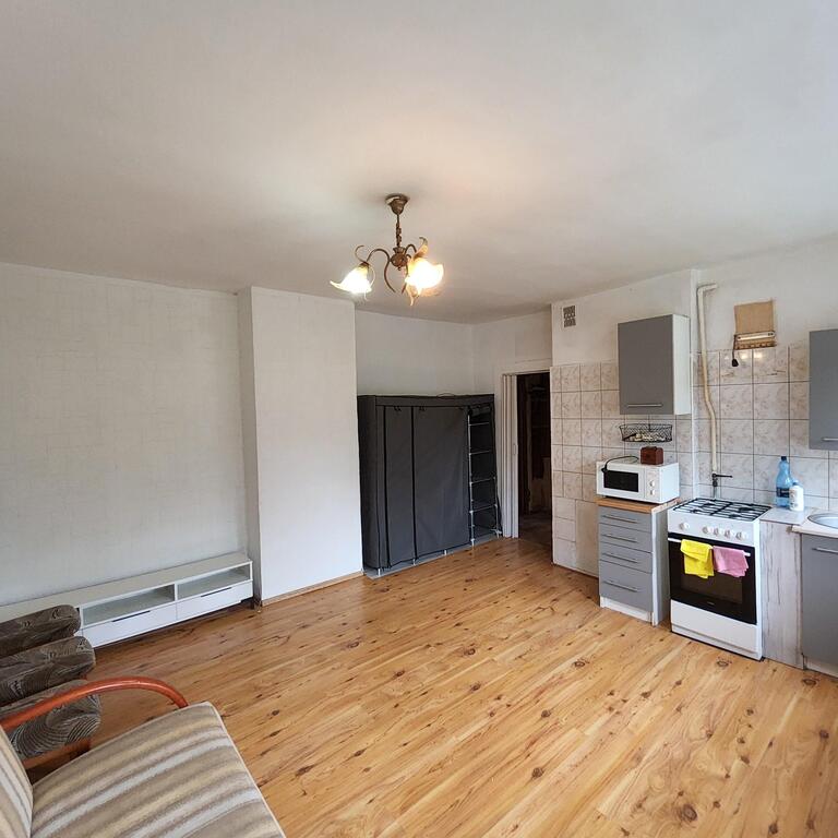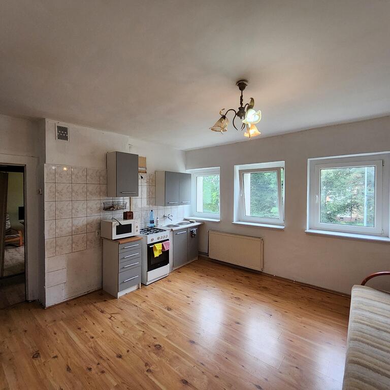 For sale: an apartment located on the first floor of a single-story building. The approximately 38 m² apartment comprises an approximately 18 m² living room with a kitchenette, a 13 m² bedroom, a 4 m² bathroom with a toilet, and a 3 m² hallway. The floors are laminate, the walls are wallpapered, and the windows are PVC. Heating and hot water are provided by a dual-circuit gas boiler. The rent is 370 PLN, with electricity and gas bills additionally charged. The apartment includes a cellar. The apartment requires renovation, but the layout offers many design possibilities. The building is insulated and has a well-maintained staircase. I recommend this apartment for its quiet, peaceful location, easy parking, and close proximity to public transportation. I invite you to a viewing.