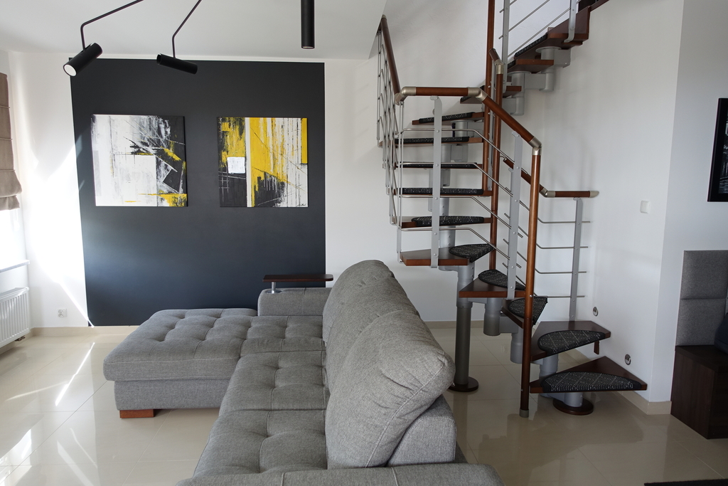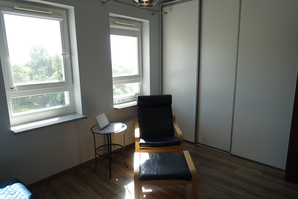 This 4-room, 2-level, spacious, furnished, and comfortable apartment, with an area of 95.66 m², is located in a quiet and peaceful neighborhood in the Warszewo housing estate. Built in 2014, this low-rise building features meticulously crafted finishes and high-quality materials. Available immediately. LEVEL I: Living room with open-plan kitchen, bedroom, bathroom, and hallway. The living room features polished stoneware floors and smooth walls. Access to a large corner balcony offers a beautiful panoramic view of the city. The open-plan kitchen opens to the living room and is equipped with built-in appliances (Siemens dishwasher, oven, refrigerator, Samsung microwave, and Arset extractor hood). The bedroom features a spacious built-in wardrobe. The bathroom with a toilet is finished in tiles and terracotta, and includes a shower. The hallway features a built-in wardrobe. LEVEL II: Two separate bedrooms, a laundry room with a walk-in closet, and a bathroom with a toilet. The rooms feature high-quality laminate flooring, and painted walls in pastel colors. The bathroom with a toilet features modern tiles and terracotta, and includes a bathtub. Wooden windows throughout the apartment, and a burglar-proof entrance door. A storage unit and garage are available for an additional fee.
