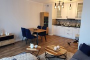 The apartment is also perfect for an office, study, etc. The apartment is located in the heart of the Old Town and has a view of the stairs leading straight to the Pomeranian Dukes' Castle. From the facility you can easily reach most of the most important attractions in Szczecin on foot (Wały Chrobrego, Embankments, Pomeranian Dukes' Castle, Lady's Tower). The Main Railway Station is only 1.5 km away. There are numerous restaurants and bars in the vicinity. The apartment is located in a building built in 2021 and is decorated in a modern style, with an elevator and a panoramic terrace overlooking the city. It covers an area of 45 m², which consists of a bedroom with a bed, a living room with a fully equipped kitchenette (fridge, oven, dishwasher) and a Smart TV corner, as well as a bathroom with a shower and a washing machine. Additionally paid administrative rent of approx. PLN 770.00 (including advance payments for heating, water and garbage) and energy according to consumption. Deposit PLN 3,500. I recommend and invite you.