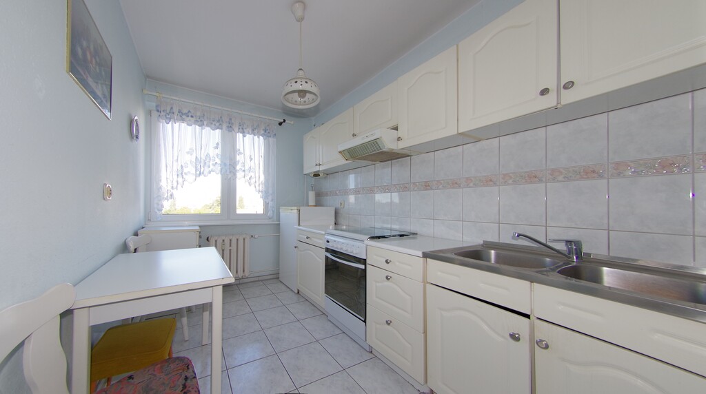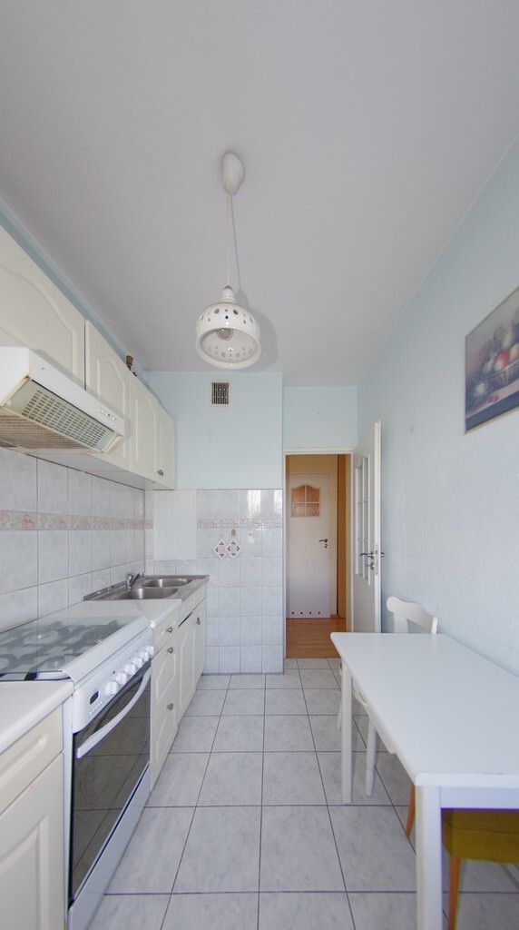 A functionally laid-out apartment with three fully-arranged rooms, a bright kitchen, and a separate bathroom and toilet. The 57.5m² apartment comprises a 16m² room with access to a large balcony, 11m² and 9m² rooms, a bright 6m² kitchen, a bathroom, a toilet, and two hallways. The apartment is basic, but very well-maintained. Floors are laminate; windows are PVC; walls are wallpapered; bathroom features older tiles and a bathtub; kitchen is furnished. Location: on the edge of the housing estate, sparsely built, with plenty of space and greenery, and a beautiful view. Public transportation: close to the express tram and bus terminus, with good access to the city center and the A6 and S3 motorways, and national road no. 10 in directions such as the seaside, Berlin, Gdańsk, and Poznań.