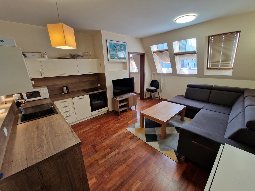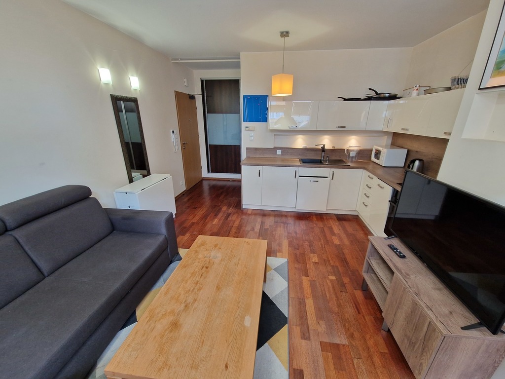 A very cozy and beautiful two-bedroom apartment for rent. The property is located in a new building with an elevator, in the Old Town-Centre district. The neighborhood is well-maintained, and the entrance to the property is additionally secured. Restaurants and historical monuments are nearby, and public transportation and the Kaskada shopping center are close by. The 42 m² apartment comprises a living room with a kitchenette, a bedroom, a hallway with a large built-in wardrobe, and a bathroom with a shower, washing machine, toilet, and sink. The apartment is fully furnished and equipped. The kitchen includes a refrigerator, microwave, dishwasher, large freezer, extractor hood, and ceramic hob. Additional fees include the community fee of approximately 300 PLN and utility bills for electricity, gas, and internet. Available for delivery and viewings from September 30, 2025. No pets. We invite you to a viewing!