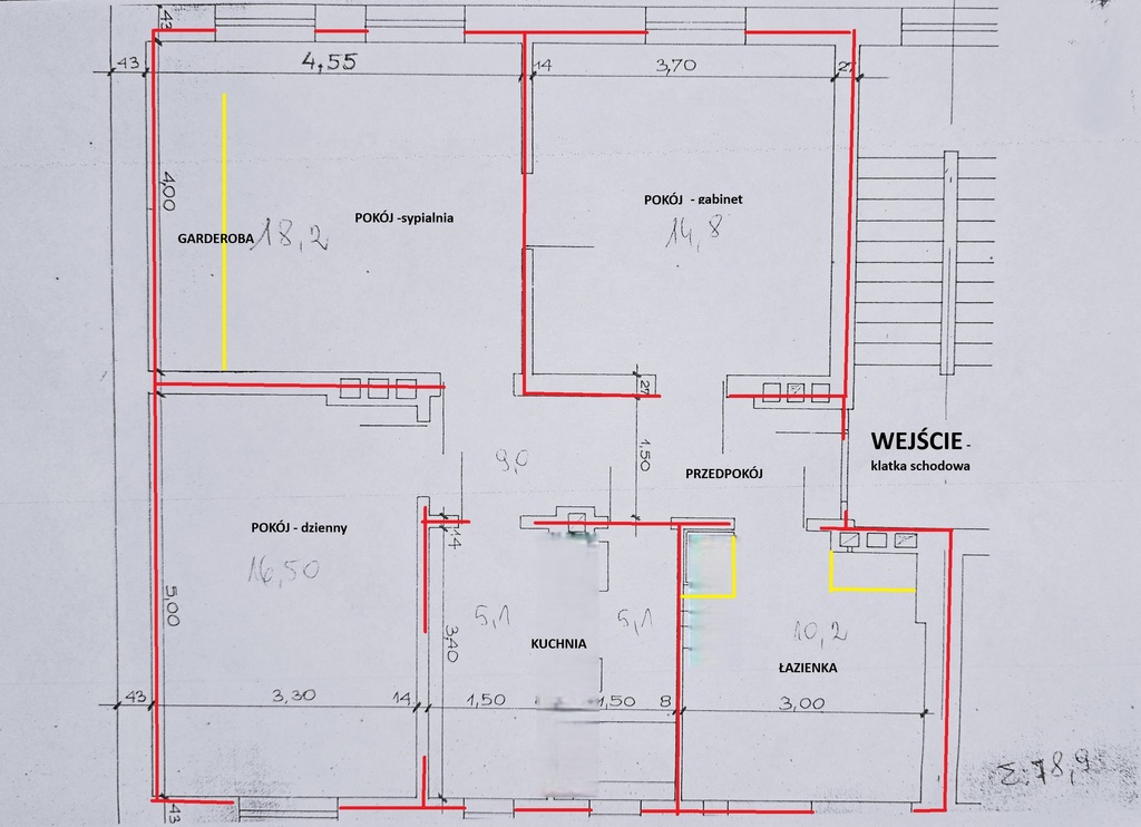 - Area: 78.9 m2 – after demolition of the furnaces and new inventory (in the land and mortgage register 75.6 m2)