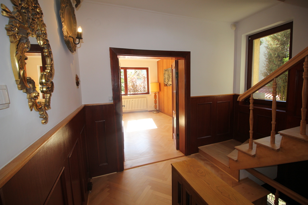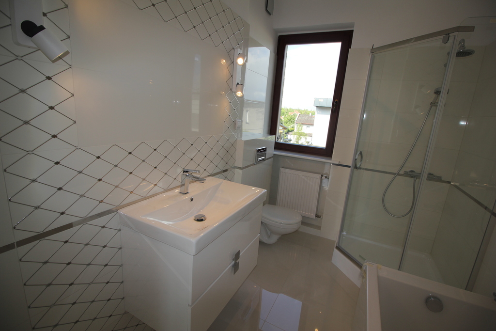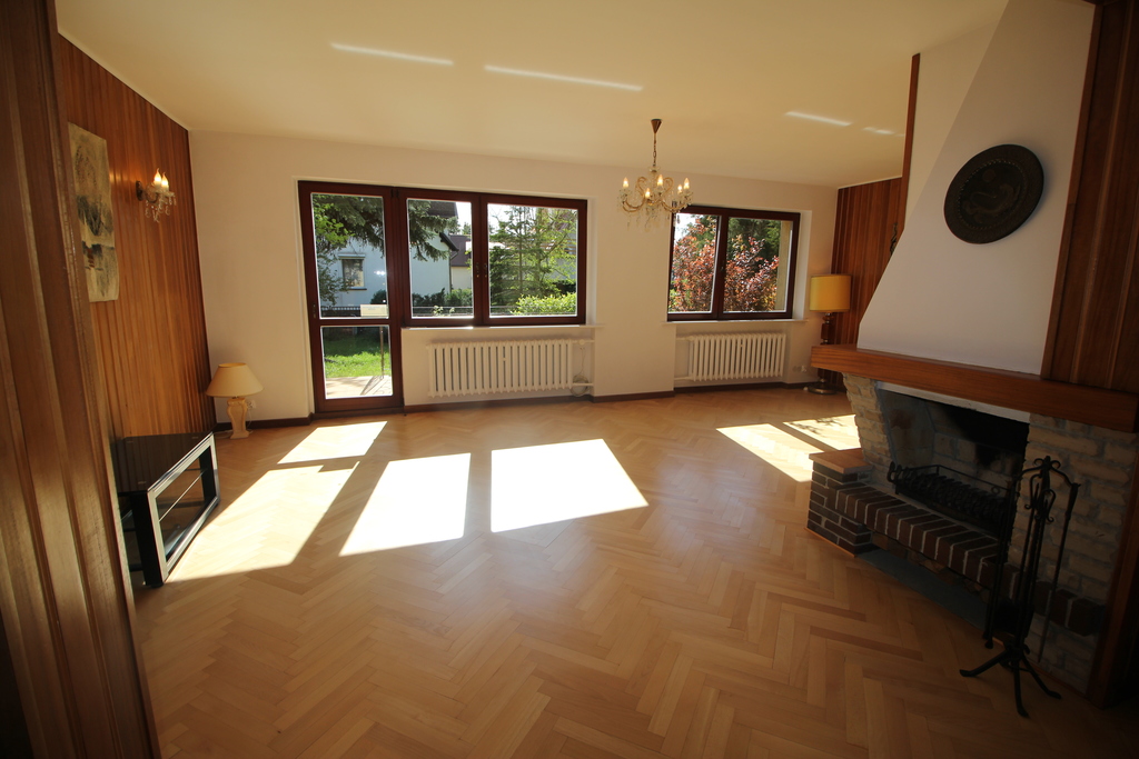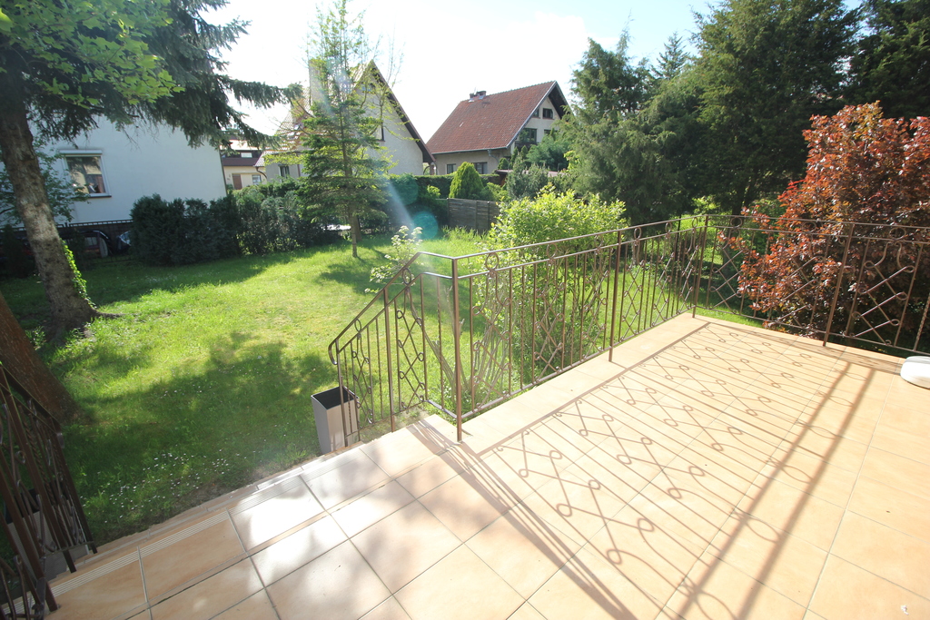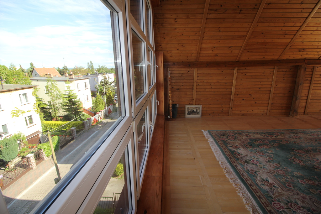 We have a large detached house for rent in the center of Gumienice. The house was built in the 80s, spacious for a large family or ideal for running a business. Ground floor: living room with fireplace, exit to the terrace and garden, dining room, kitchen, bathroom. First floor: three bedrooms, bathroom Second floor: large 100m2 open space, glazed, 4m high with a beautiful view of the city. The building has a full basement, with a garage and a boiler room. Discreet green garden with tall plants. Gas heating and hot water. Rent PLN 8,000 plus electricity, gas, water, garbage. Occasional lease, notarial deed required, eviction clause, tenant’s liability insurance and 1 month deposit. I recommend it because of its excellent location, close to full infrastructure, bus stops, shops, and a quiet and peaceful street,