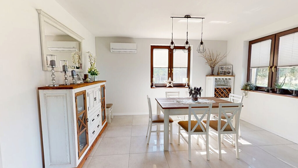 Standards and Materials: The house was built using traditional technology with meticulous attention to detail. It features solid, monolithic reinforced concrete ceilings and a wooden roof covered with high-quality ceramic tiles. The building is excellently thermally insulated (polystyrene on the exterior walls, extruded polystyrene on the foundations, and mineral wool in the attic), which translates into low maintenance costs. Photovoltaic panels were installed on the roof, providing an additional ecological and economic advantage.