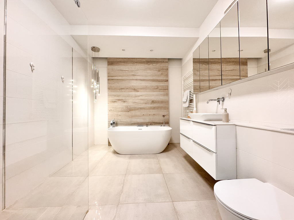 comfort (elevator, only 3 apartments per floor, huge terrace surrounding the property with a beautiful panorama of Szczecin, quiet and green neighborhood),