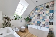 – attic (usable area 65.74 m2): room (10.20 m2), room (10.18 m2), room (9.99 m2), room (9.09 m2) with wardrobe (2.34 m2), bathroom with bathtub, washbasin, bidet and toilet (5.88 m2), laundry room (4.59 m2), hall (8.52 m2), stairs (4.95 m2).